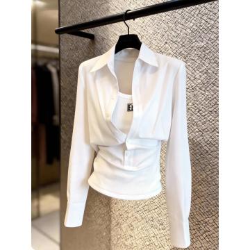 BY10563# 简约宽松舒适休闲随性干练流行百搭白色假两件衬衫女早春小衫 服裝批發女裝批發服飾貨源