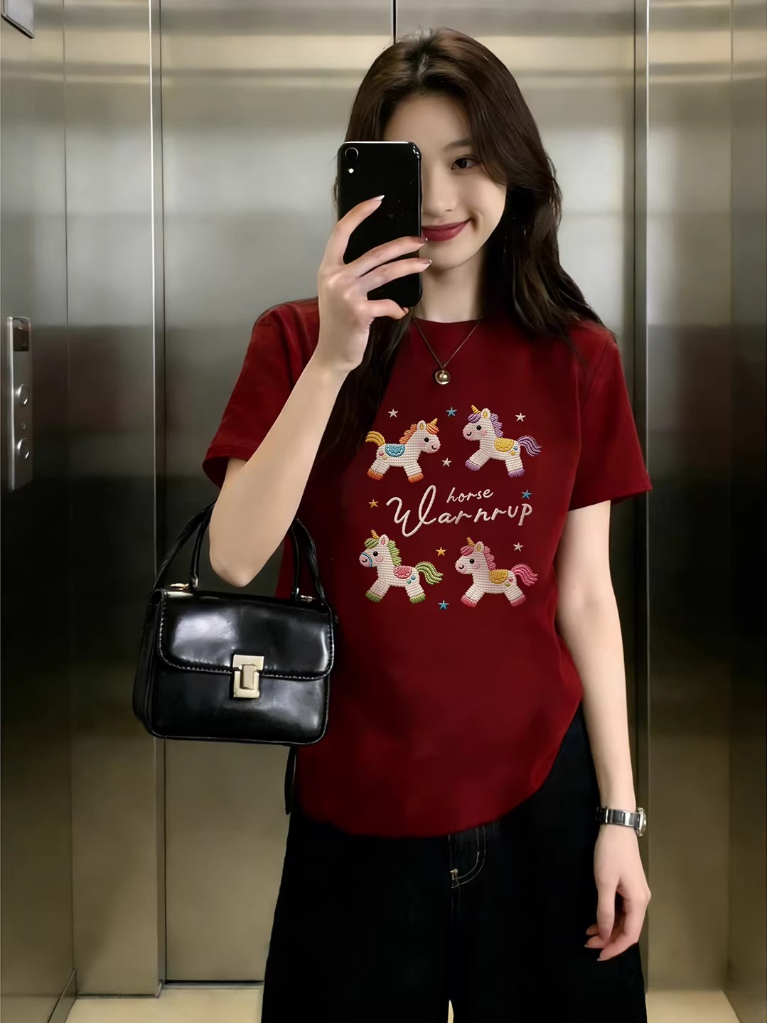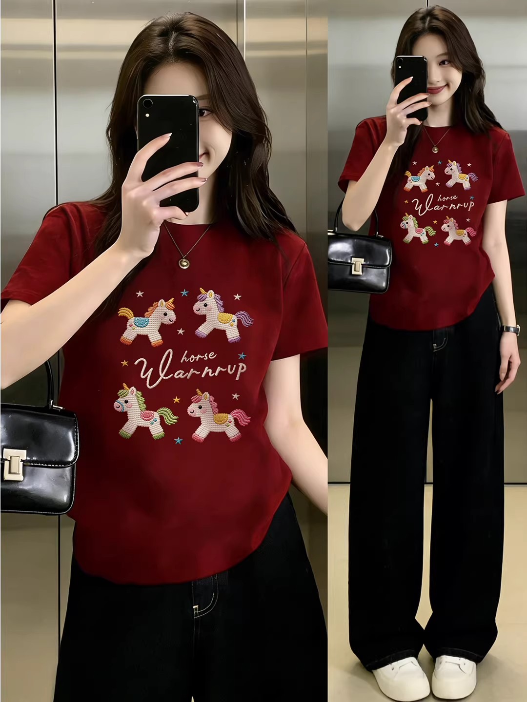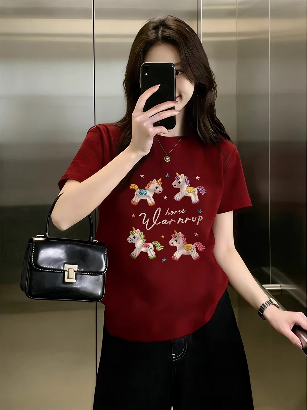 BY10574# 纯棉常规款正肩短袖高弹力新款夏季修身显瘦洋气上衣 服裝批發女裝批發服飾貨源