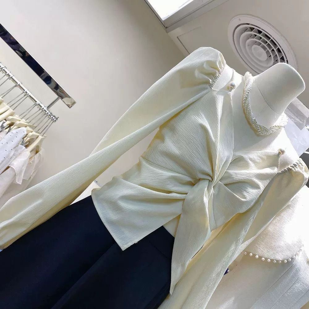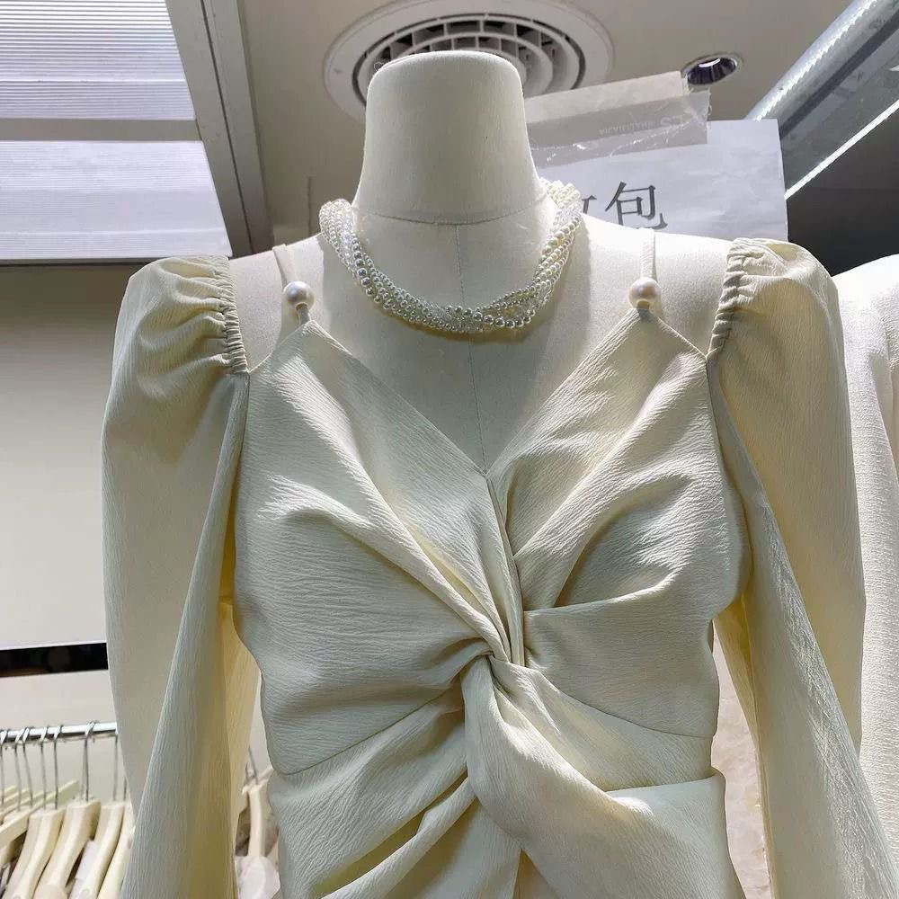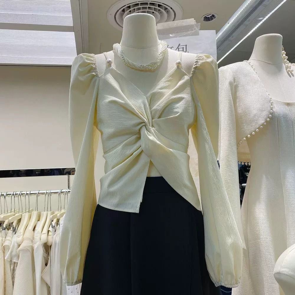 BY10609# v领吊带衬衫女收腰短款显瘦上衣法式春气质高级感复古港风 服裝批發女裝批發服飾貨源