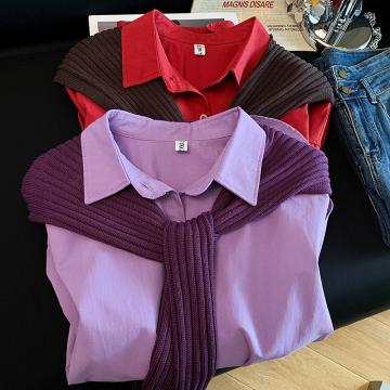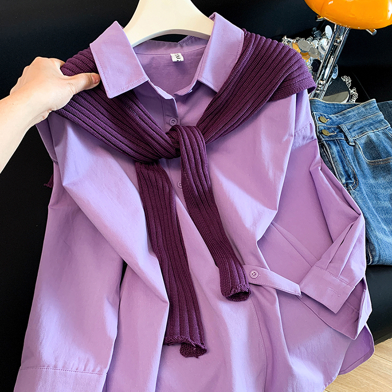 BY10639# 洋气软糯减龄高级感紫色衬衫女新款休闲时尚披肩衬衣 服裝批發女裝批發服飾貨源