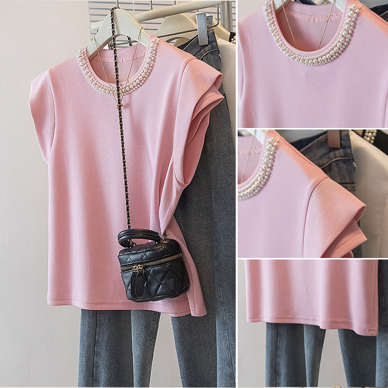 BY10653# 大码女装春季新款韩版胖MM高级感潮流钉珠设计感显瘦修身上衣 服裝批發女裝批發服飾貨源