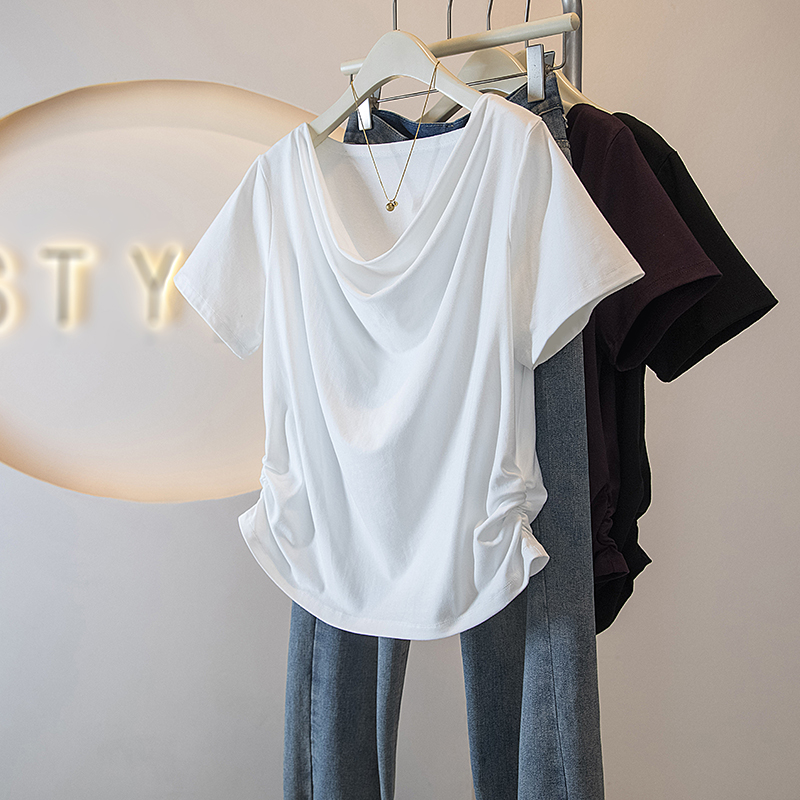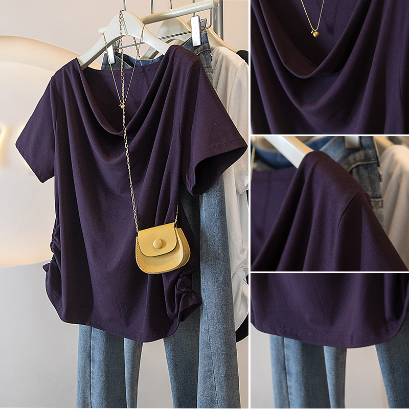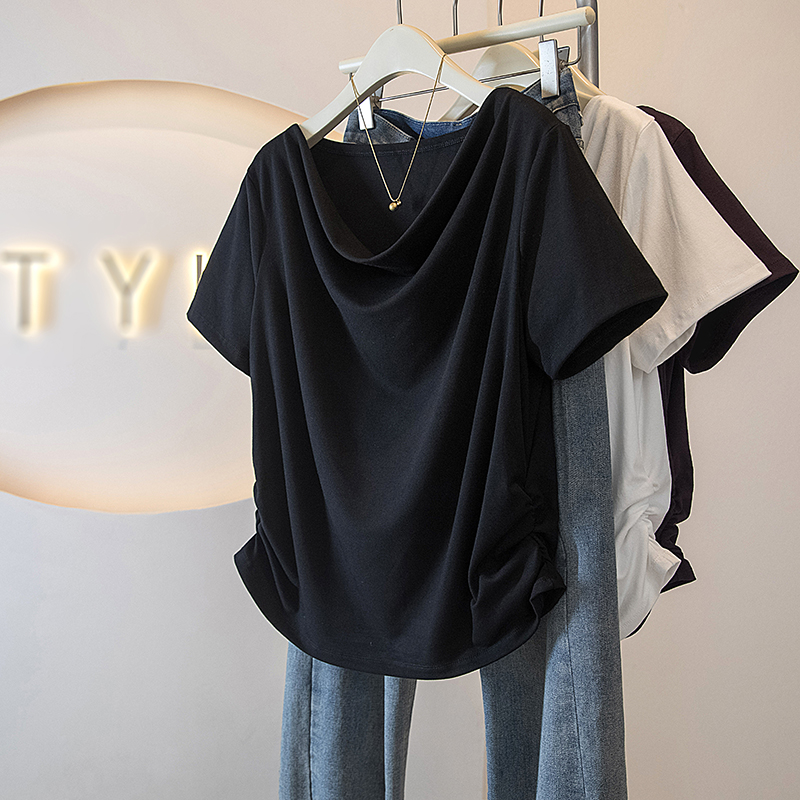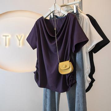 BY10655# 大码女装胖MM新款韩版高级感潮流浪荡领设计感显瘦修身上衣 服裝批發女裝批發服飾貨源