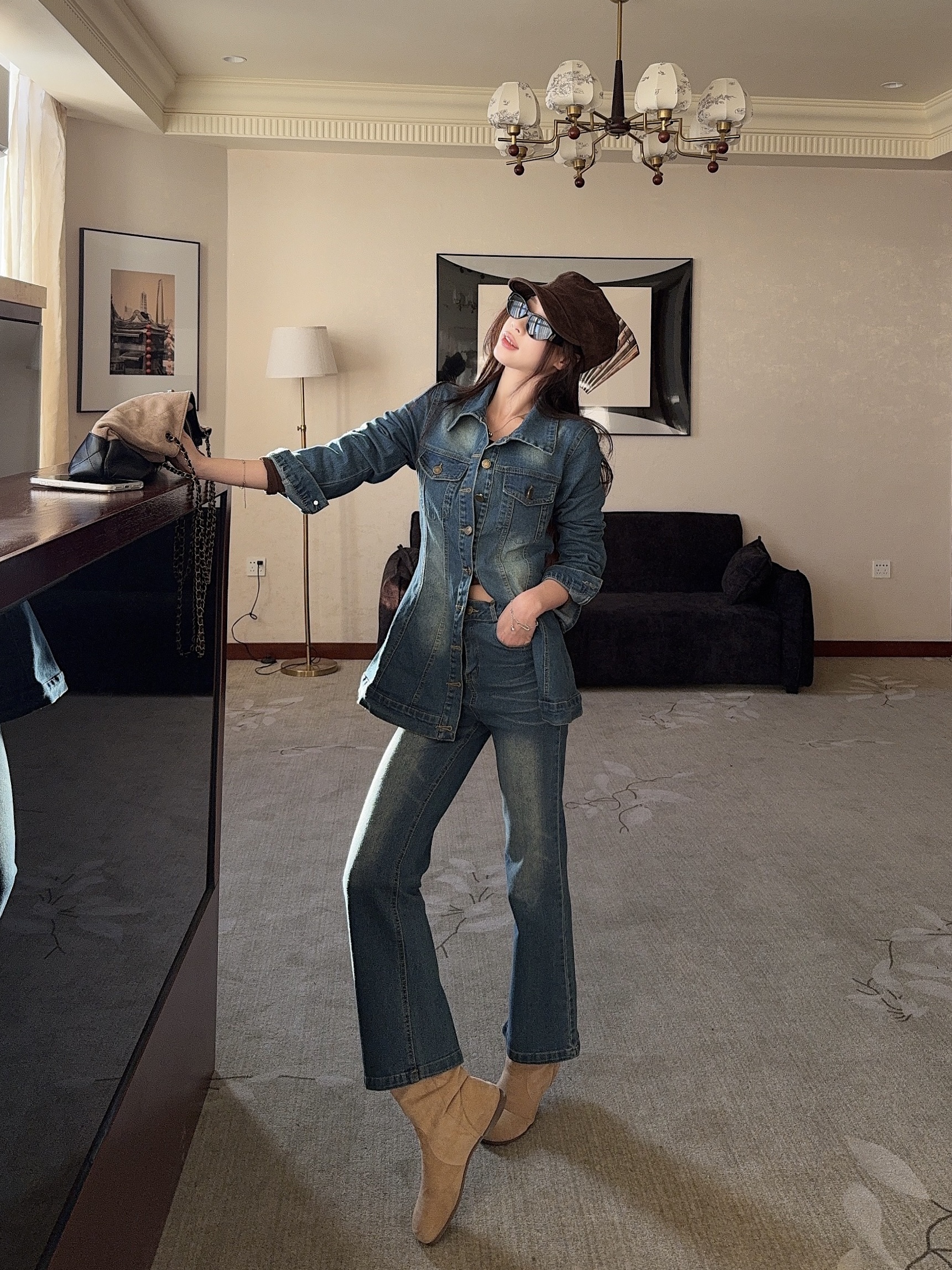 BY10728# 早春一整套超火又酷又飒高级感牛仔外套裤子两件套装 服裝批發女裝批發服飾貨源
