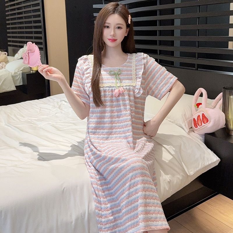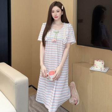 Home > 文胸、睡衣、假发、饰品 > BY10766# 色织条纹睡衣女夏季公主风短袖中长睡裙大码220斤家居服 服裝批發女裝批發服飾貨源