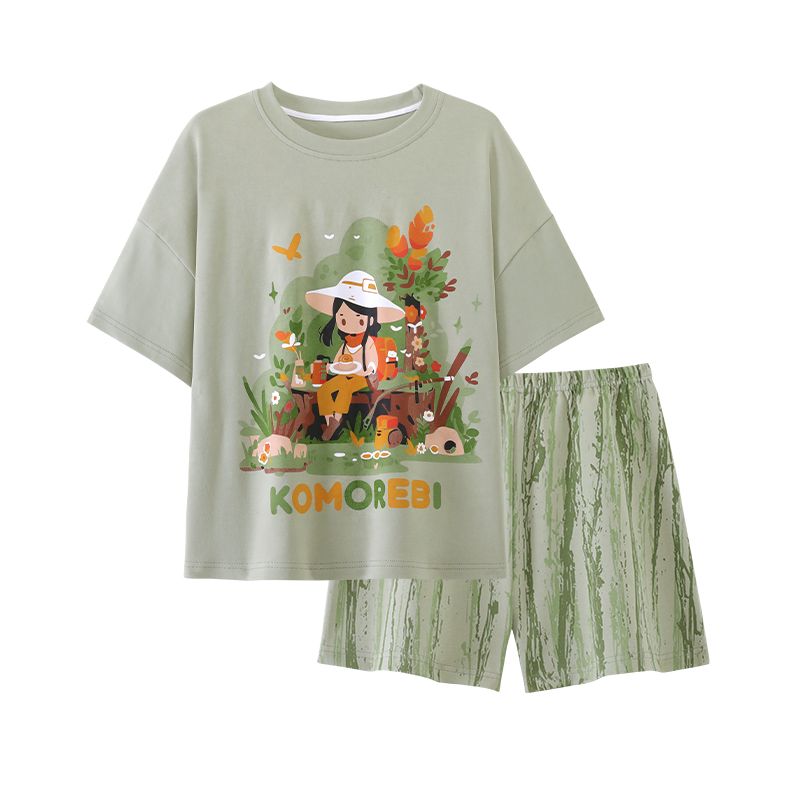 BY10768# 女睡衣夏季新款拉架仿棉圆领短袖短裤可爱舒适家居服套装 服裝批發女裝批發服飾貨源