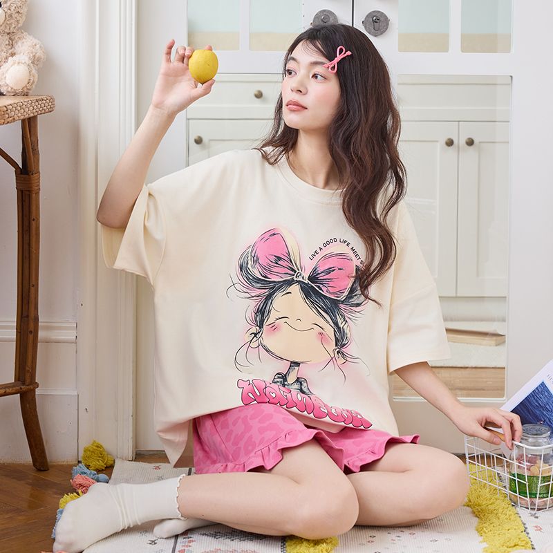 BY10775# 夏季新款睡衣女拉架仿棉圆领套头短袖短裤可爱家居服套装 服裝批發女裝批發服飾貨源