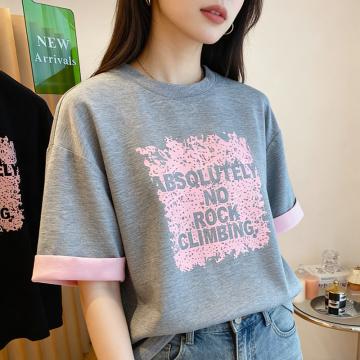 BY10788# 纯棉韩版圆领大码短袖夏宽松百搭休闲豹纹字母印花t恤女上衣潮 服裝批發女裝批發服飾貨源