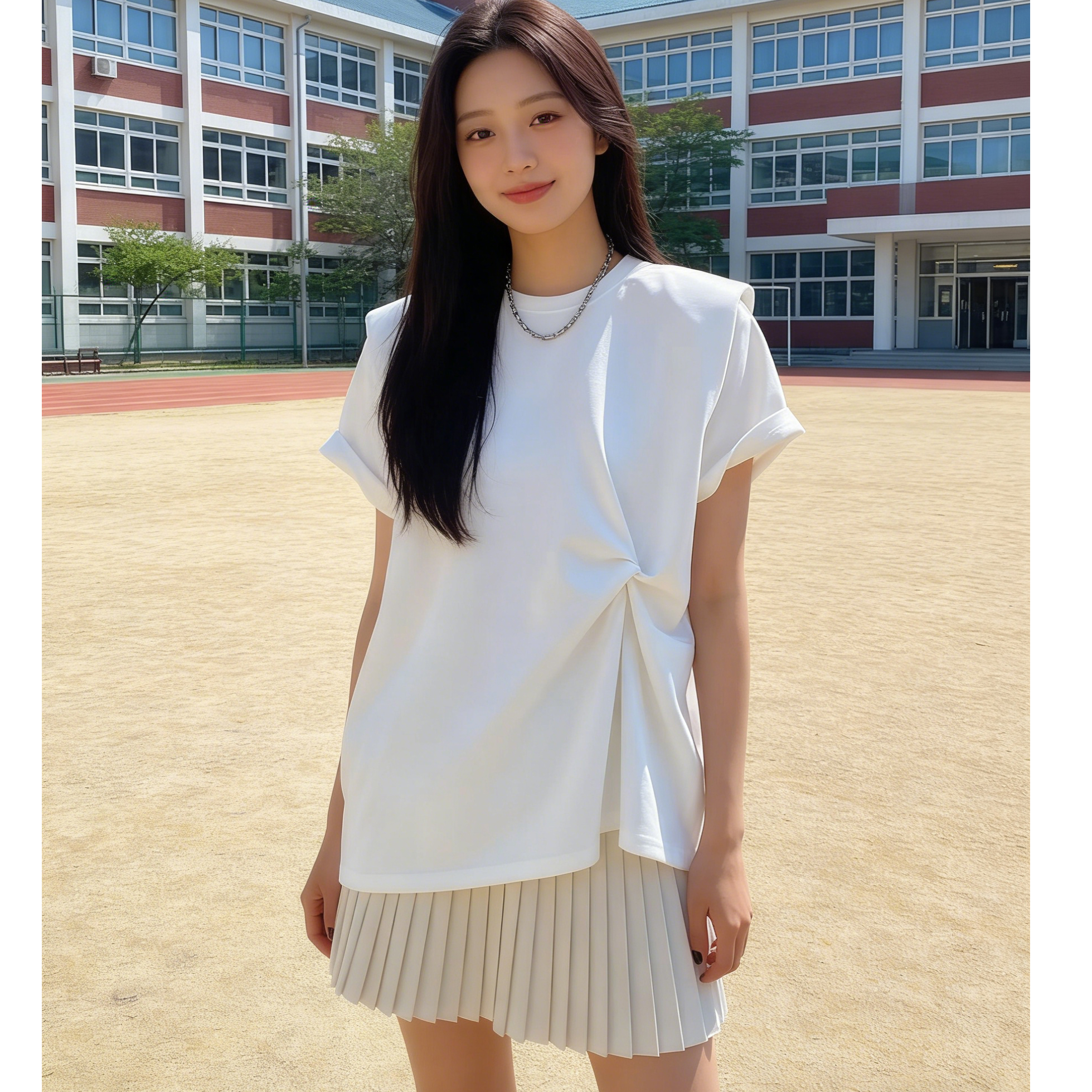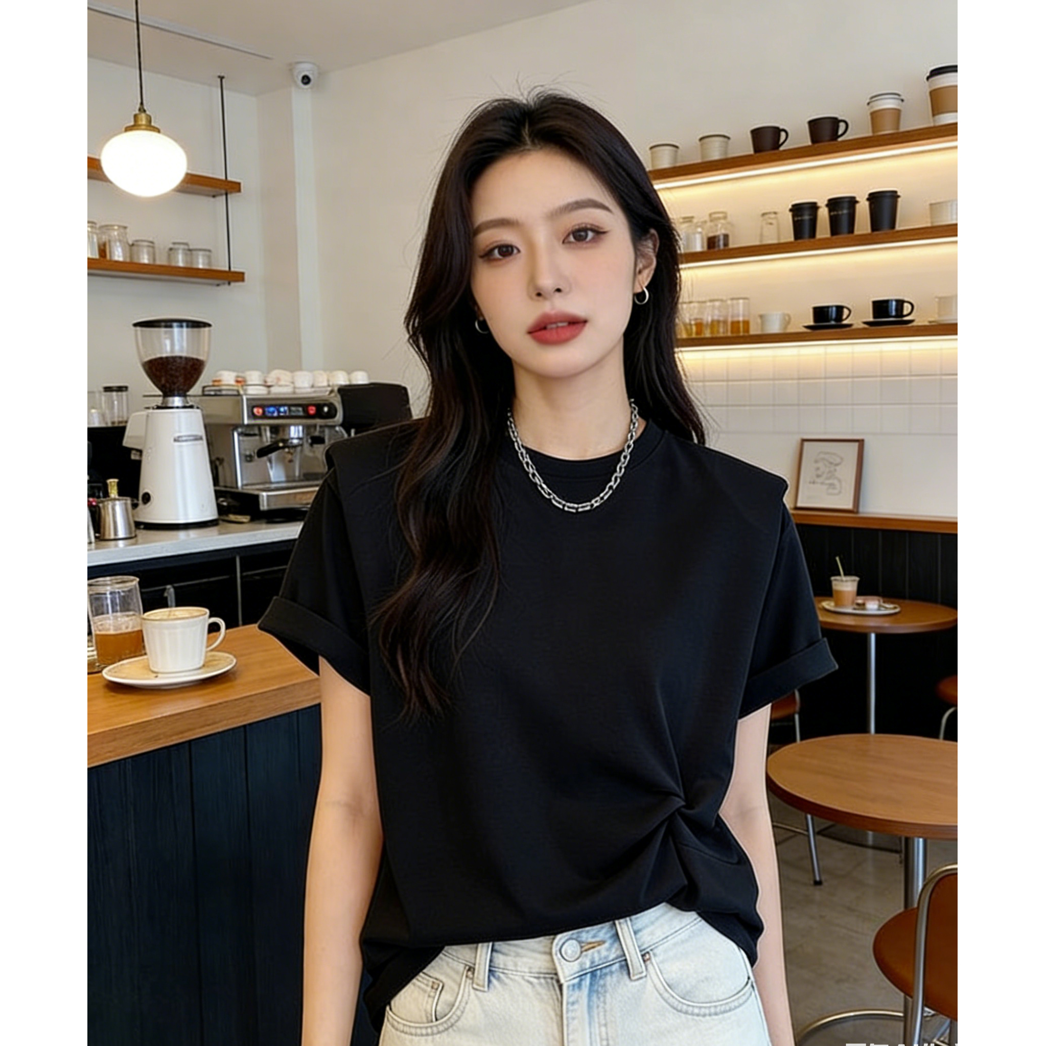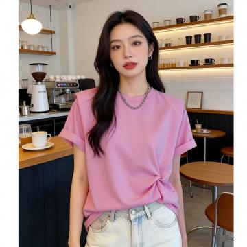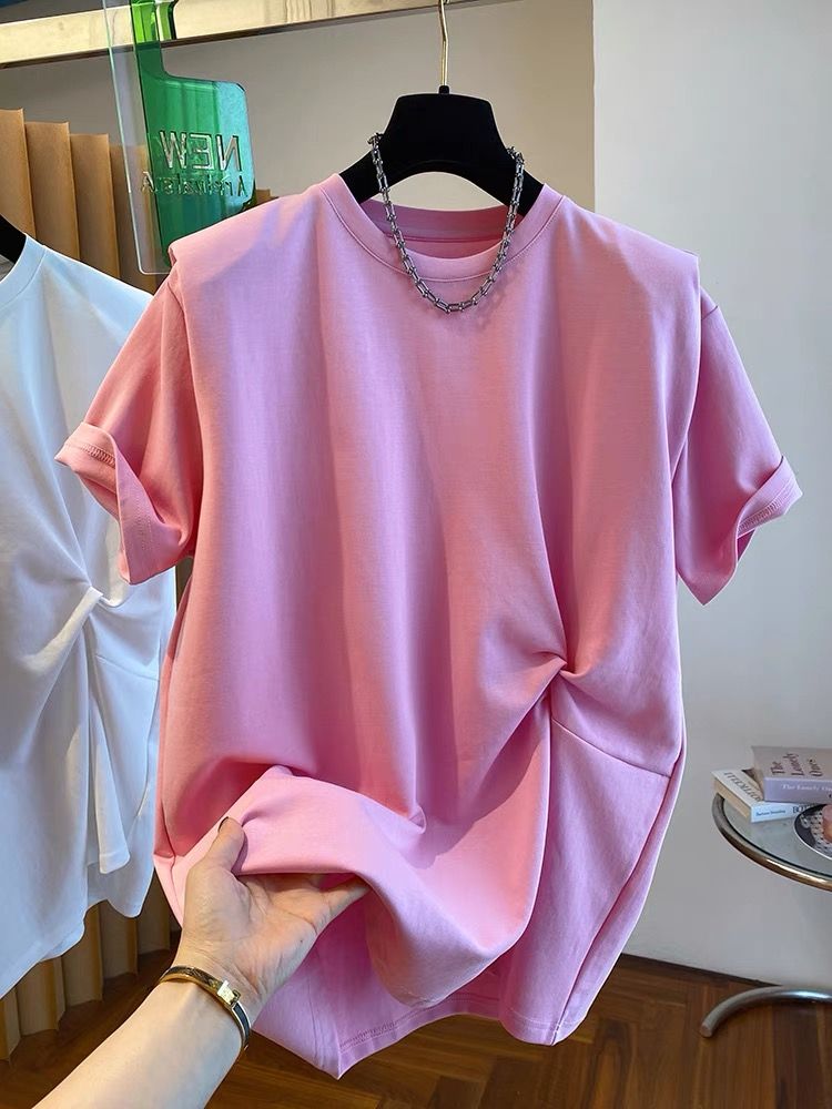 BY10789# 新款宽松扭结设计感t恤女短袖欧货大版棉布垫肩打底衫上衣夏 服裝批發女裝批發服飾貨源