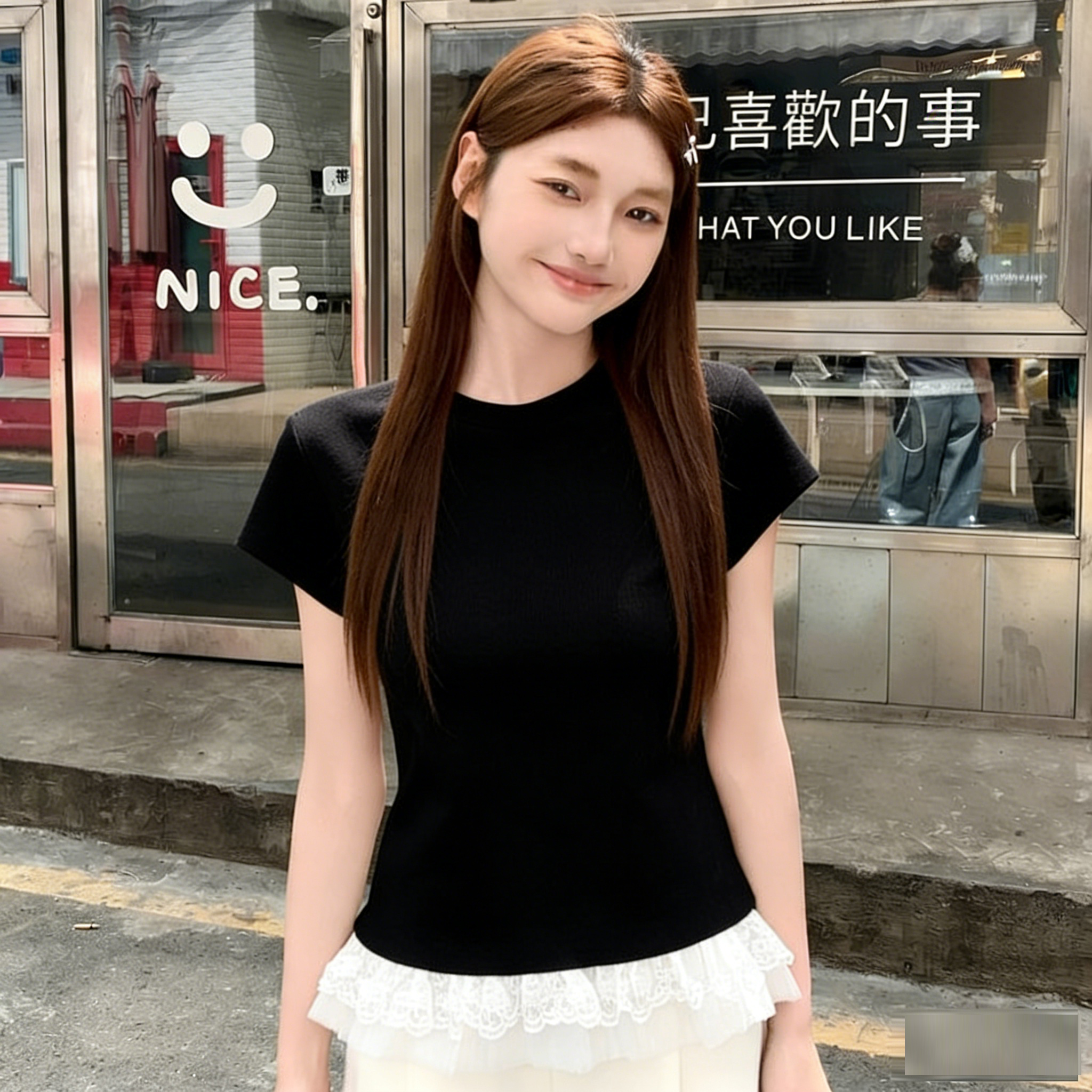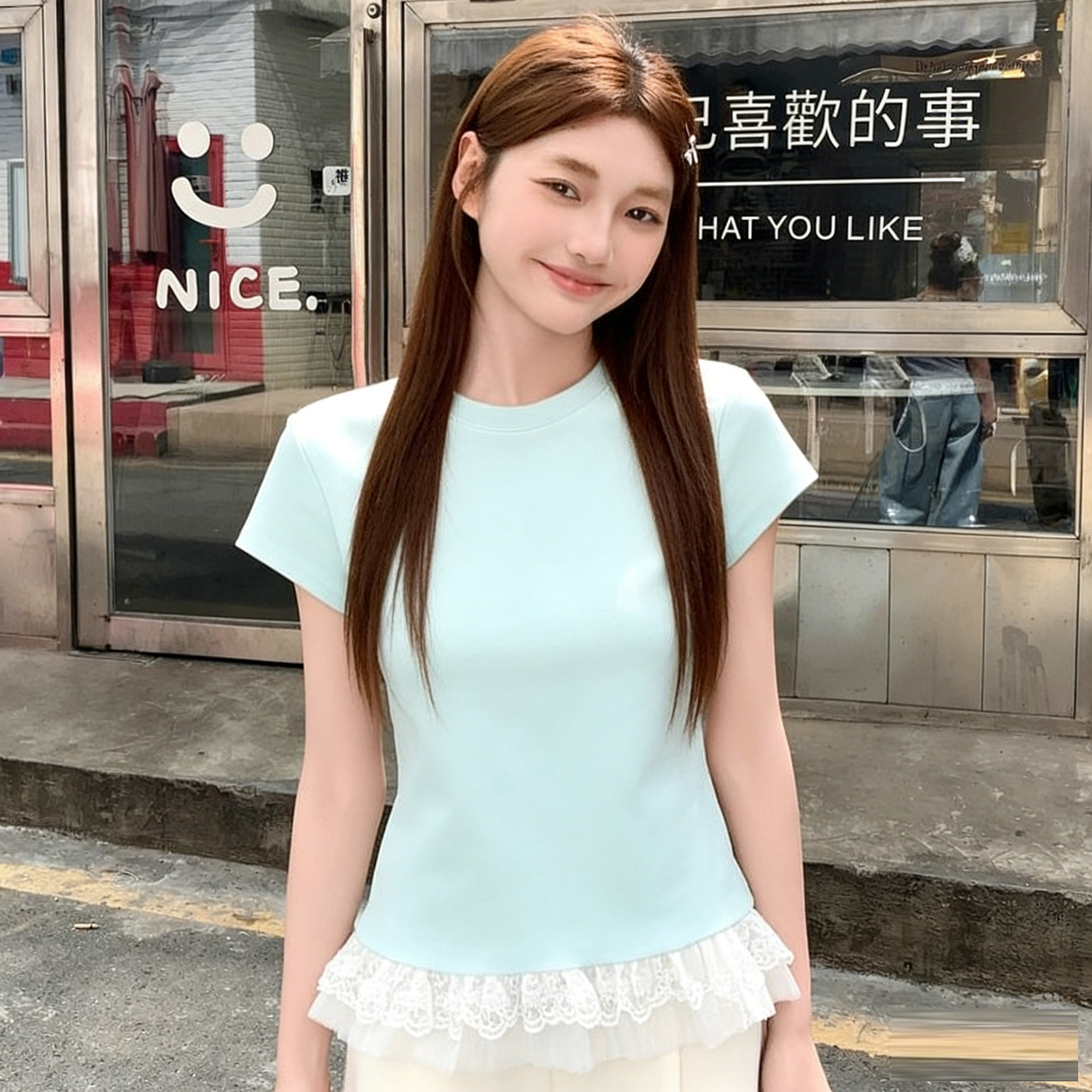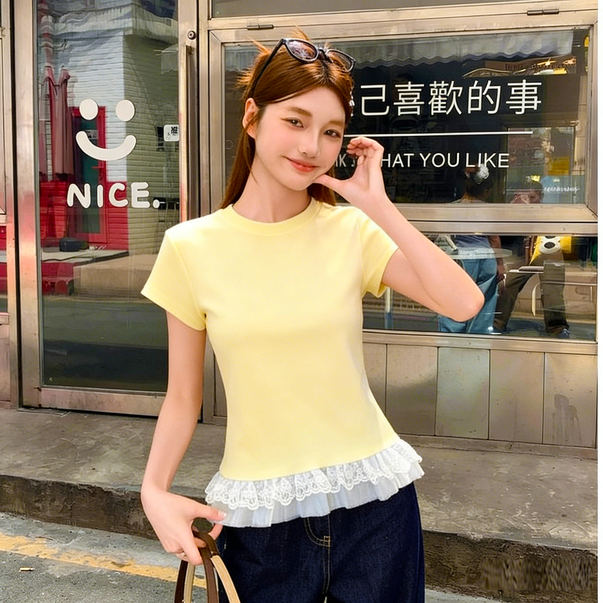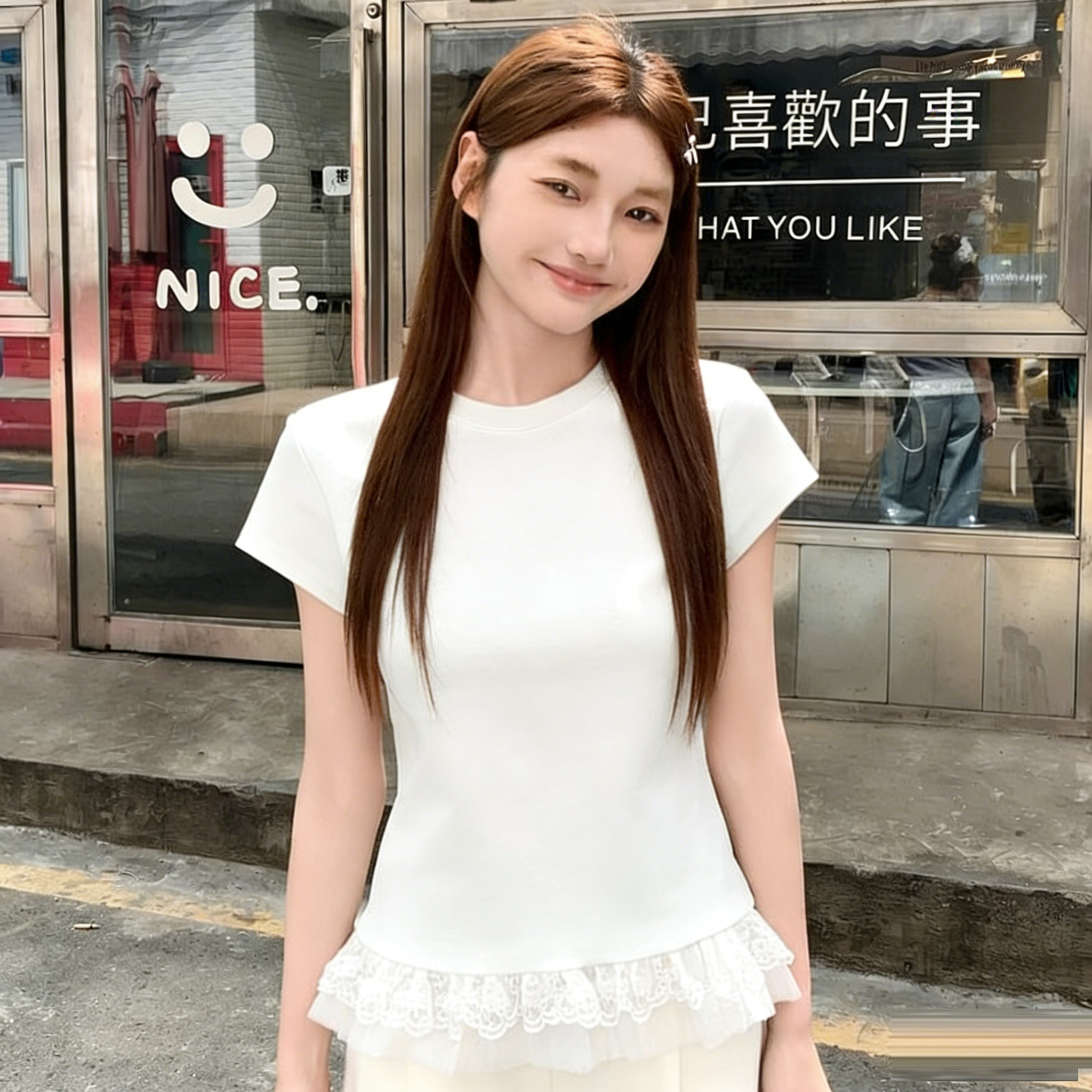 BY10792# 蕾丝花边芭蕾风白色短袖t恤女夏季新款内搭修身显瘦打底上衣 服裝批發女裝批發服飾貨源