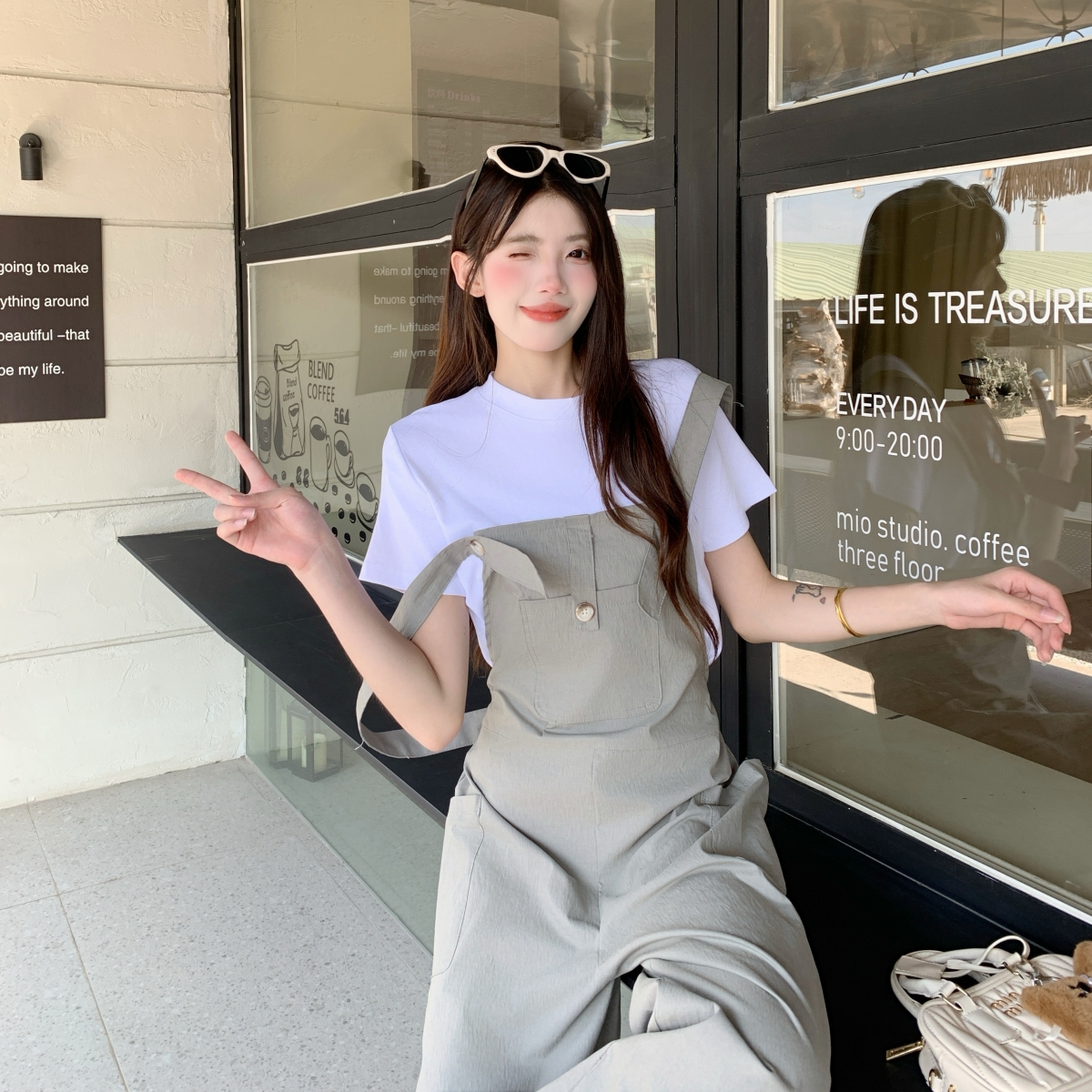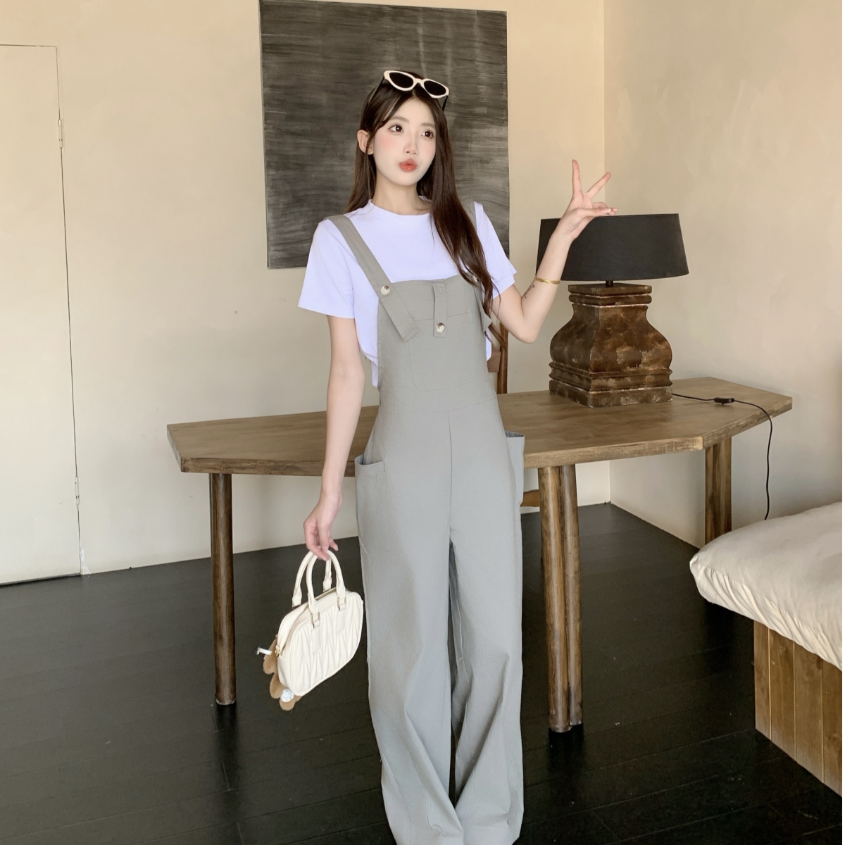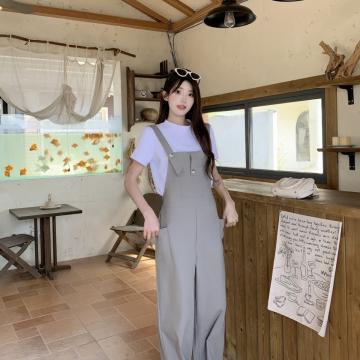BY10835# 今年流行爆款灰色背带裤春夏季新款设计感宽松慵懒风长裤套装 服裝批發女裝批發服飾貨源