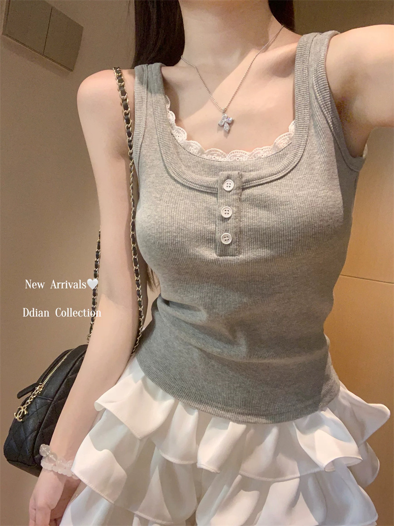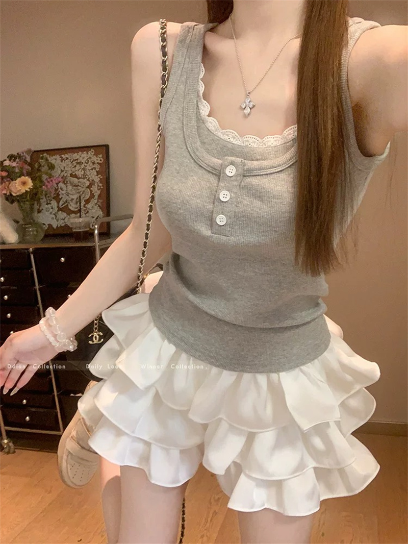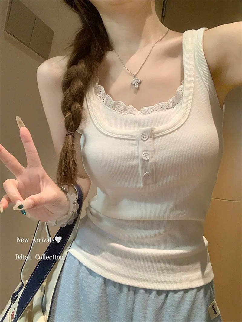 Home > 打底背心、防晒衣、围巾、披肩 > 蕾丝花边假两件工字背心女夏季新款修身显瘦辣妹上衣内搭短款 服裝批發女裝批發服飾貨源