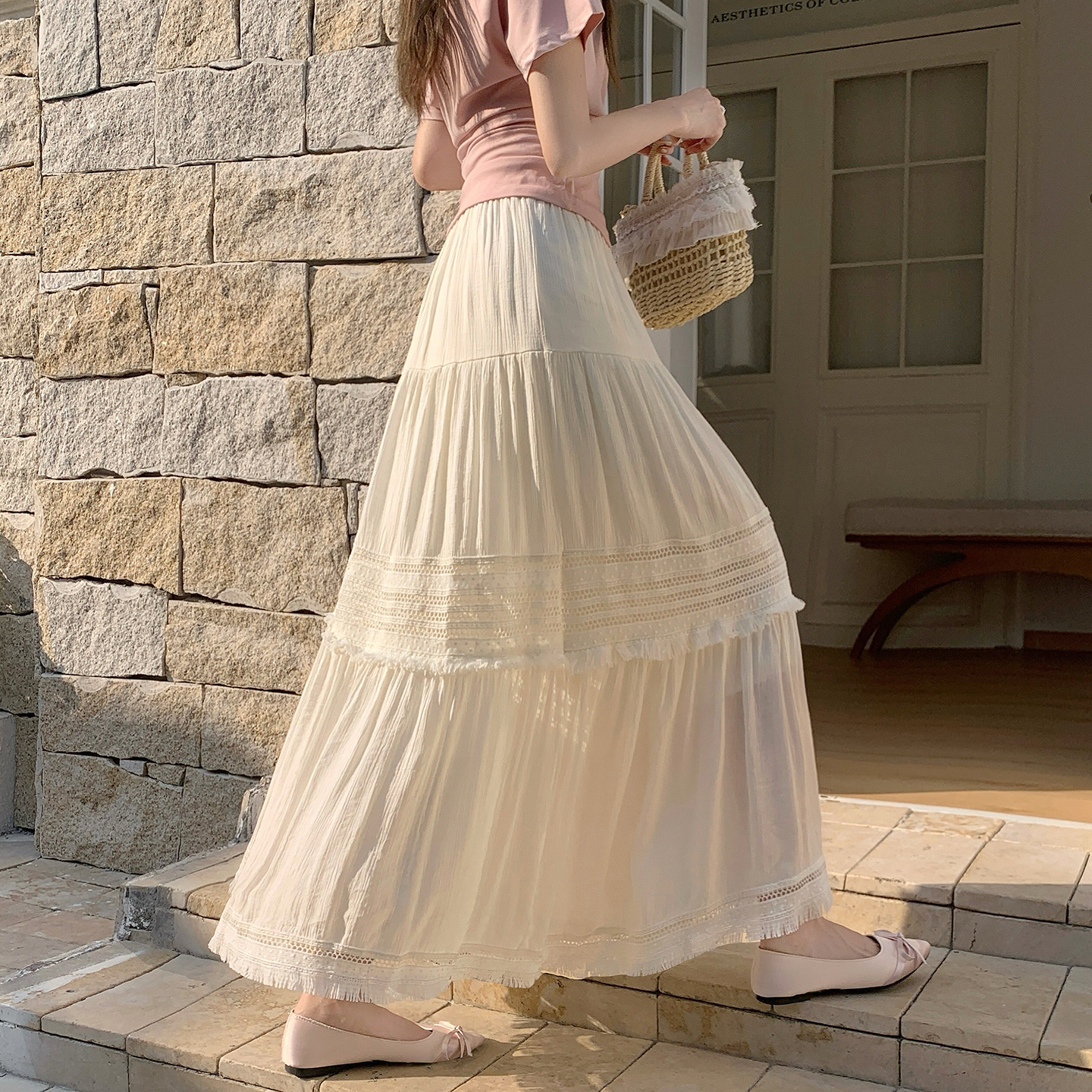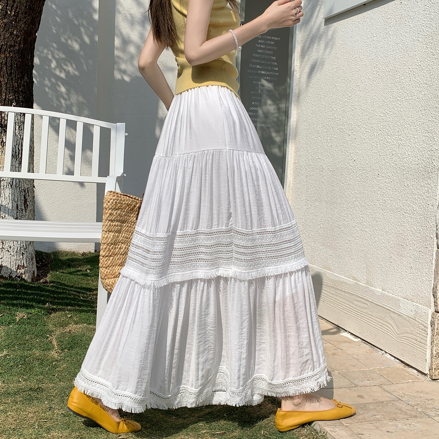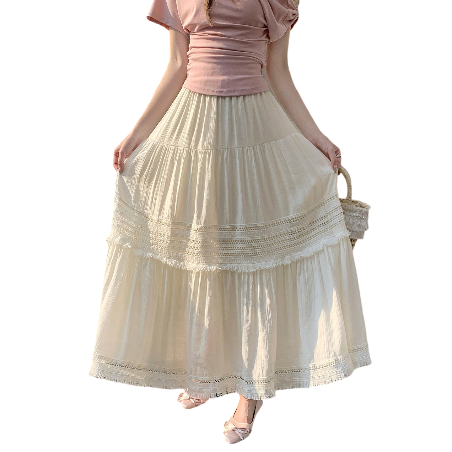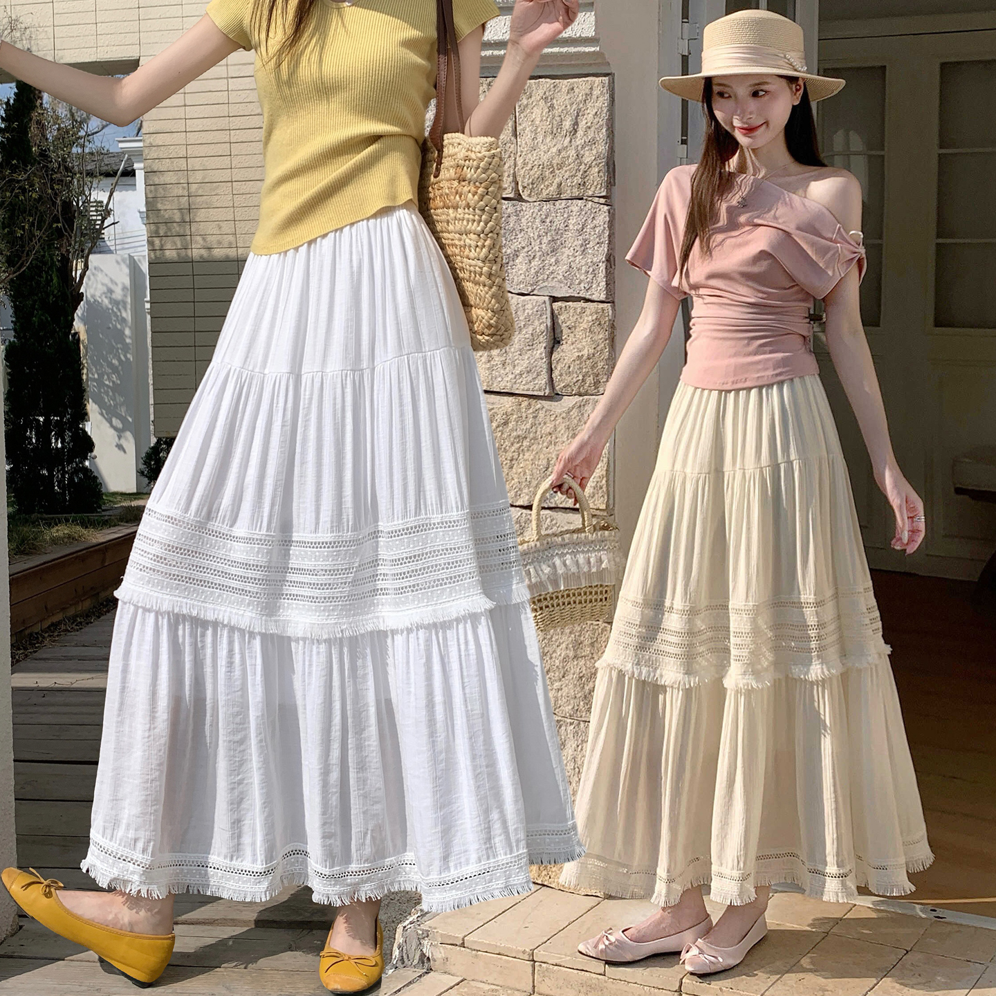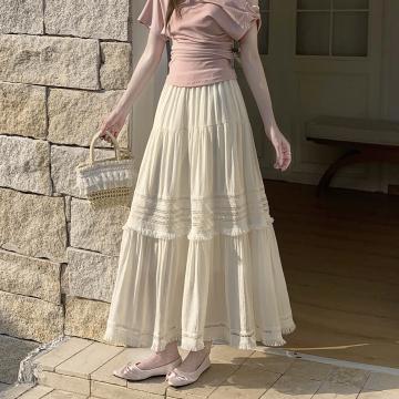 温柔风镂空流苏边显瘦半身裙女春季高腰褶皱宽松层层蛋糕裙潮 服裝批發女裝批發服飾貨源