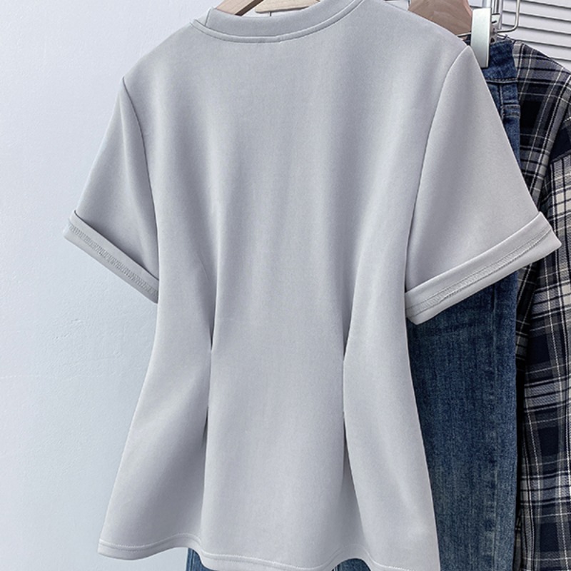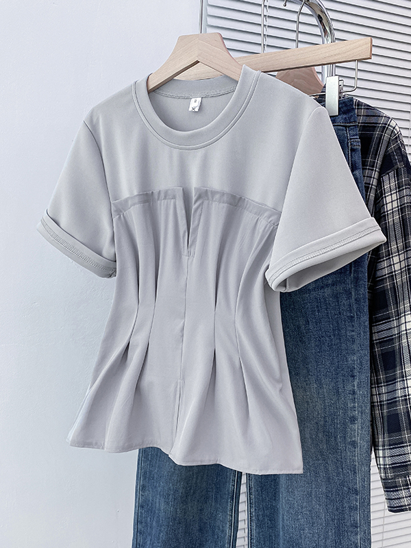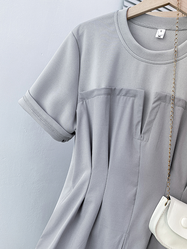 BY11241# 大码夏季新款时尚假两件拼接短袖T恤女休闲洋气百搭上衣 服裝批發女裝批發服飾貨源