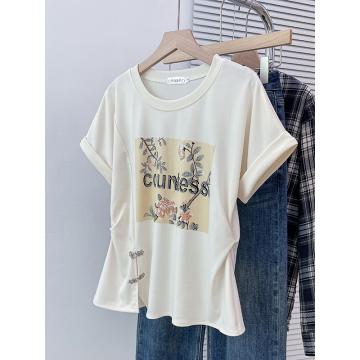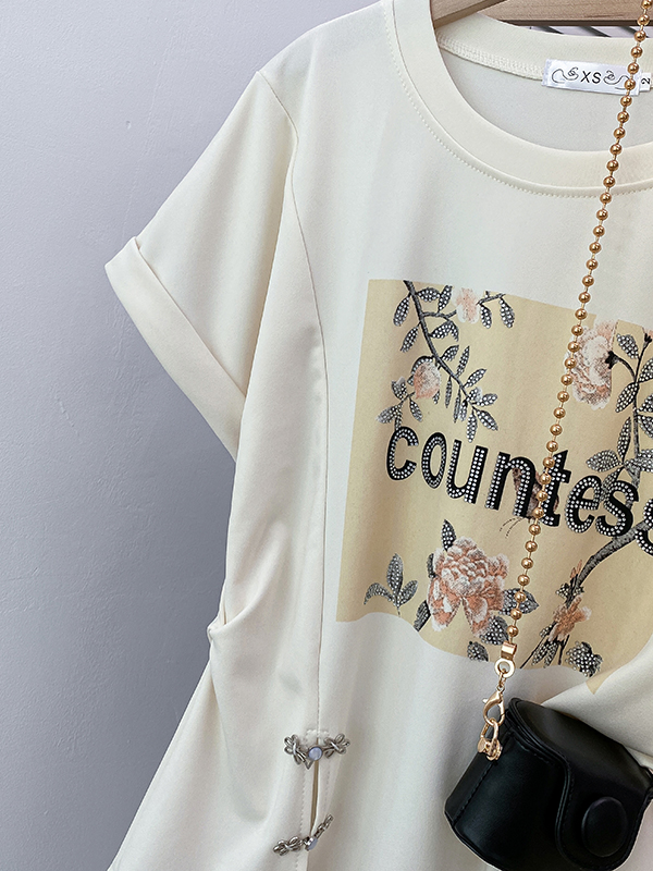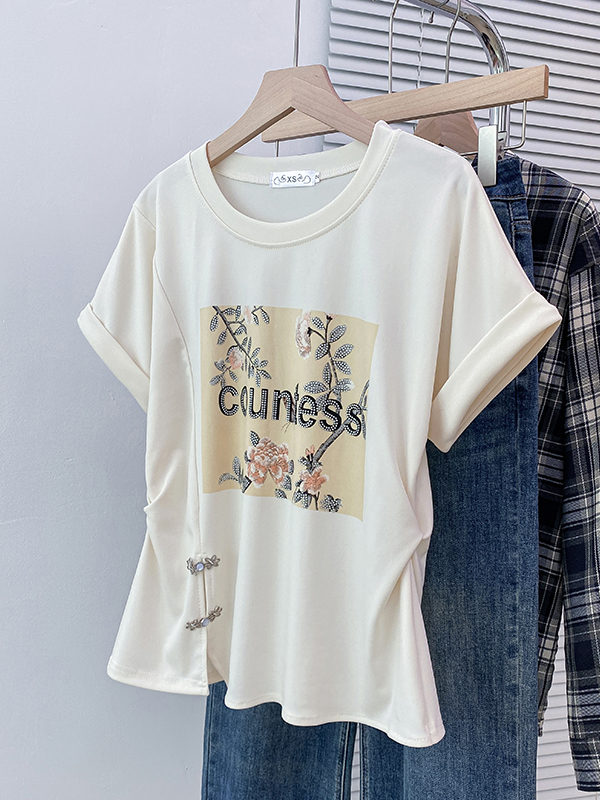 BY11242# 夏款显瘦收腰小飞袖上衣微胖mm设计感小众新中式盘扣短袖T恤 服裝批發女裝批發服飾貨源
