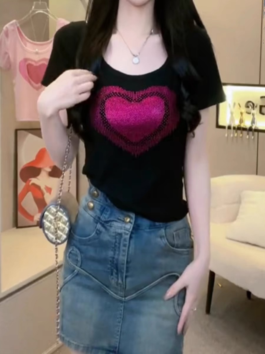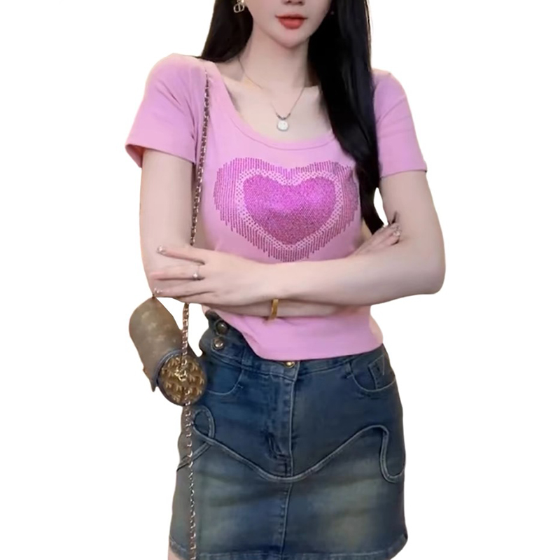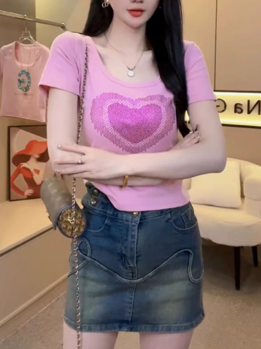 BY11251# 大码女装夏季新款修身显瘦方领短袖t恤微胖欧货漂亮时尚上衣 服裝批發女裝批發服飾貨源