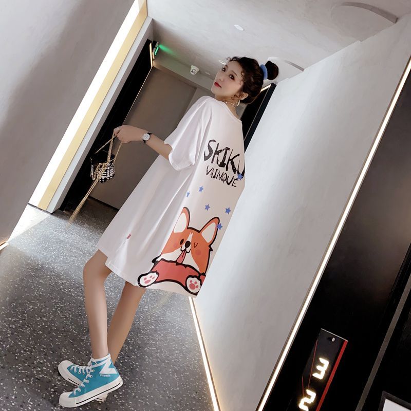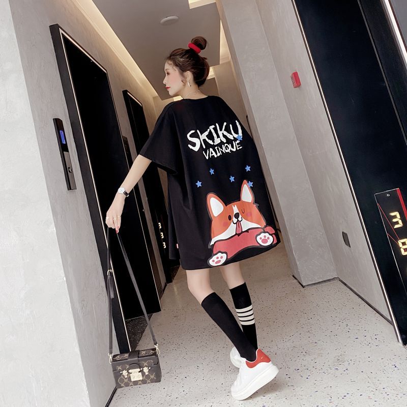 BY11283# 拉架大码女装胖MM卡通印花中长款短袖T恤女 服裝批發女裝批發服飾貨源