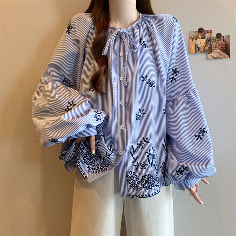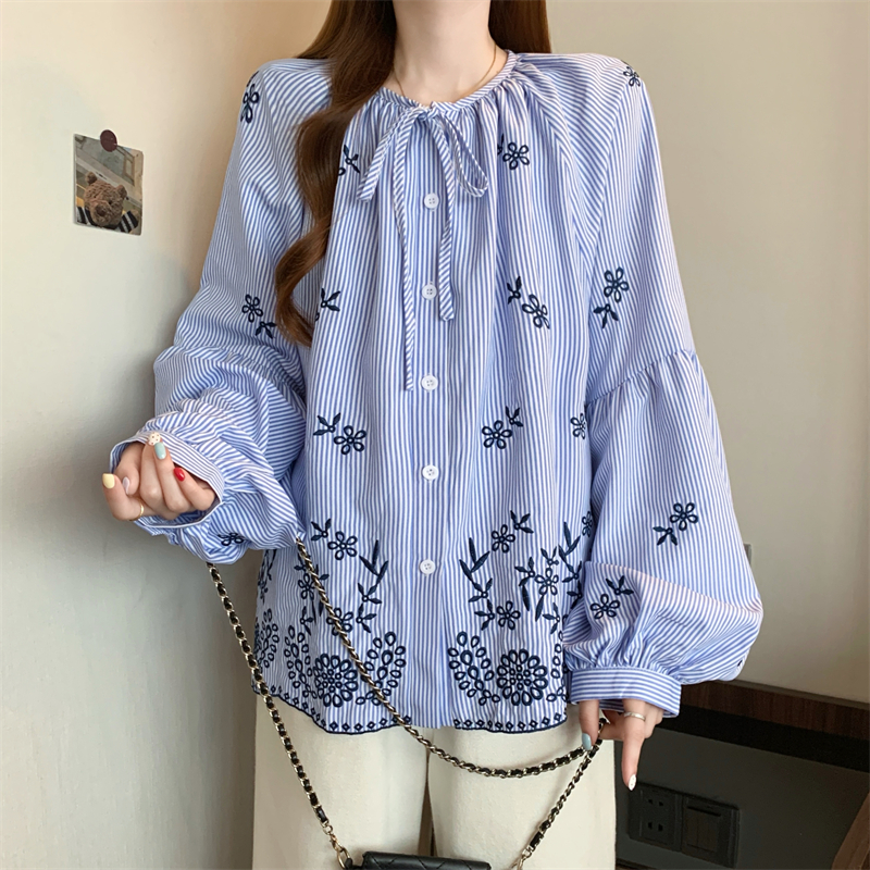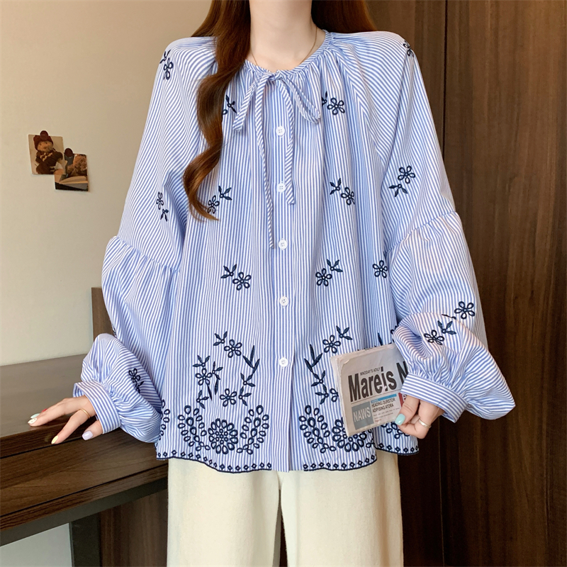 BY11539# 春季大码宽松刺绣设计感娃娃衫衬衣女装韩版长袖小衫上衣 服裝批發女裝批發服飾貨源