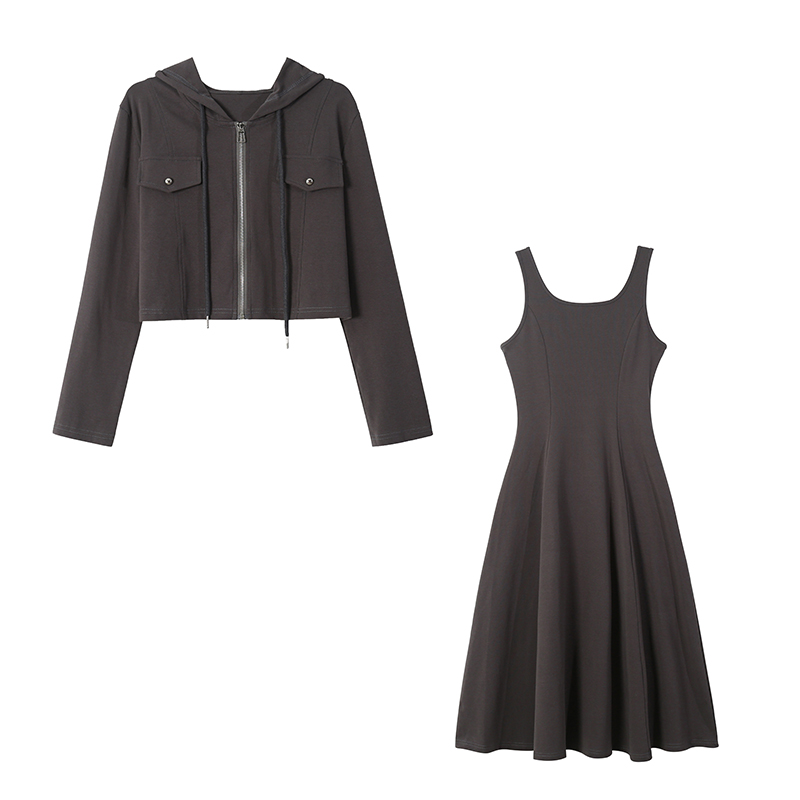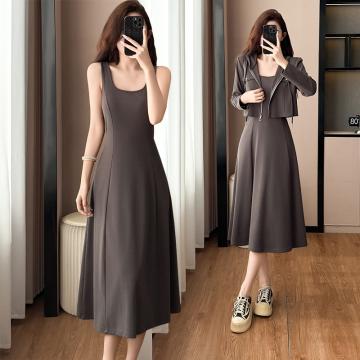 两件套时尚洋气修身显瘦大码女装胖mm胖妹妹长袖两穿连衣裙阔太太 服裝批發女裝批發服飾貨源