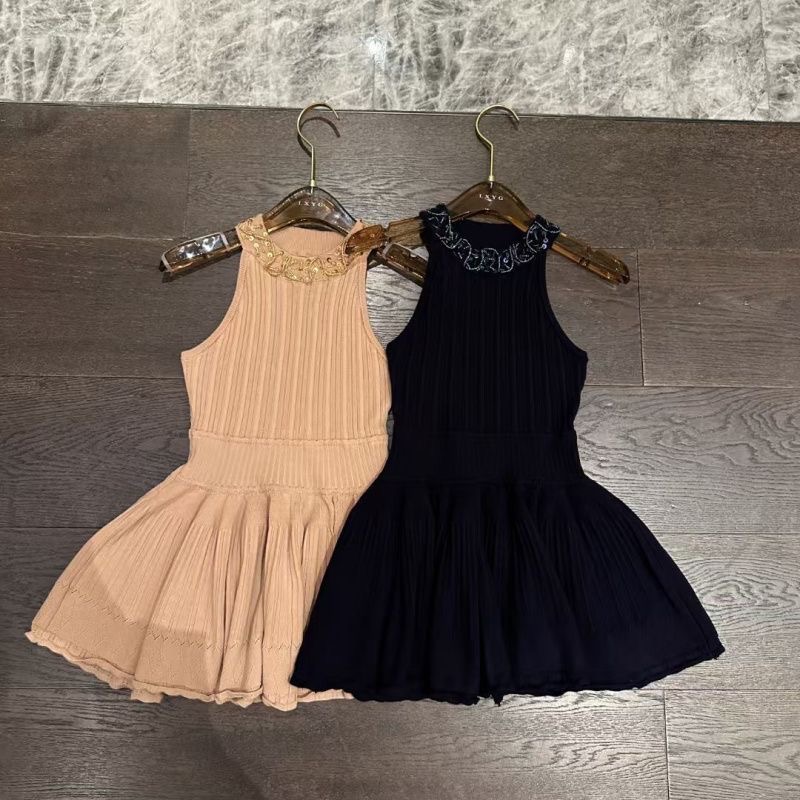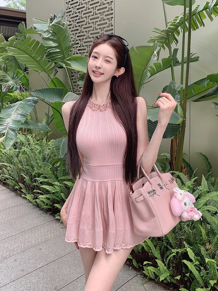 BY11711# 法式名媛御姐千金风无袖挂脖重工亮片串珠收腰背心针织礼服裙女 服裝批發女裝批發服飾貨源
