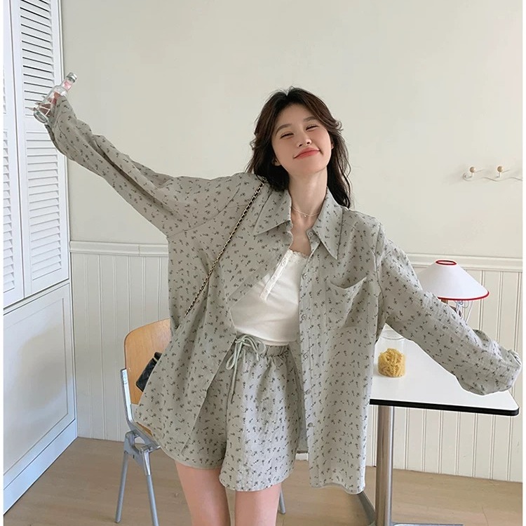 ootd穿搭衬衫短裤套装女春夏减龄休闲度假防晒开衫两件套 服裝批發女裝批發服飾貨源