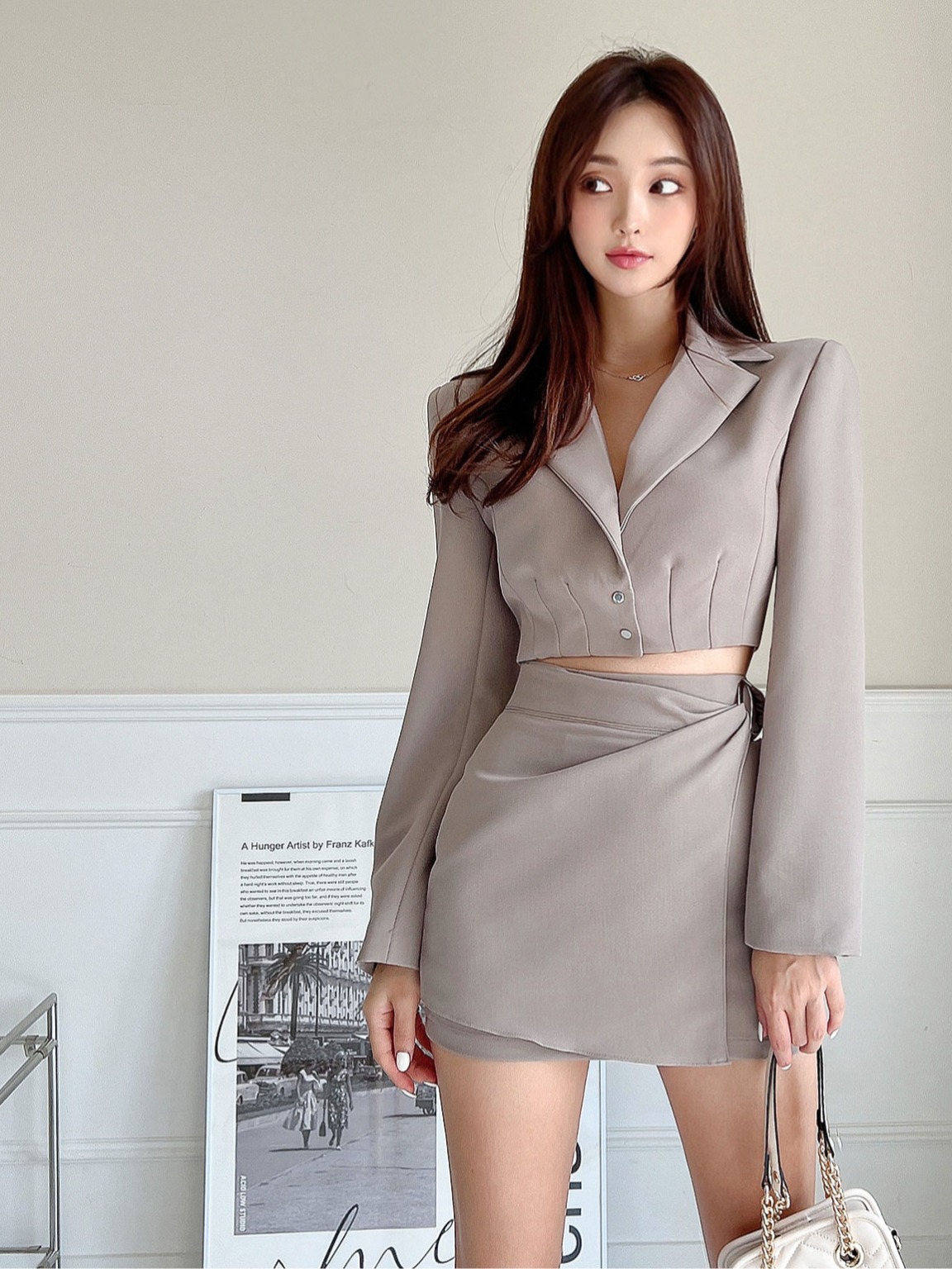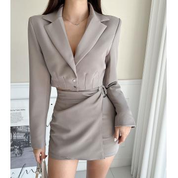 韩系辣妹套装裙女春秋气质短款西装外套+不规则包臀短裙子两件套 服裝批發女裝批發服飾貨源