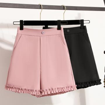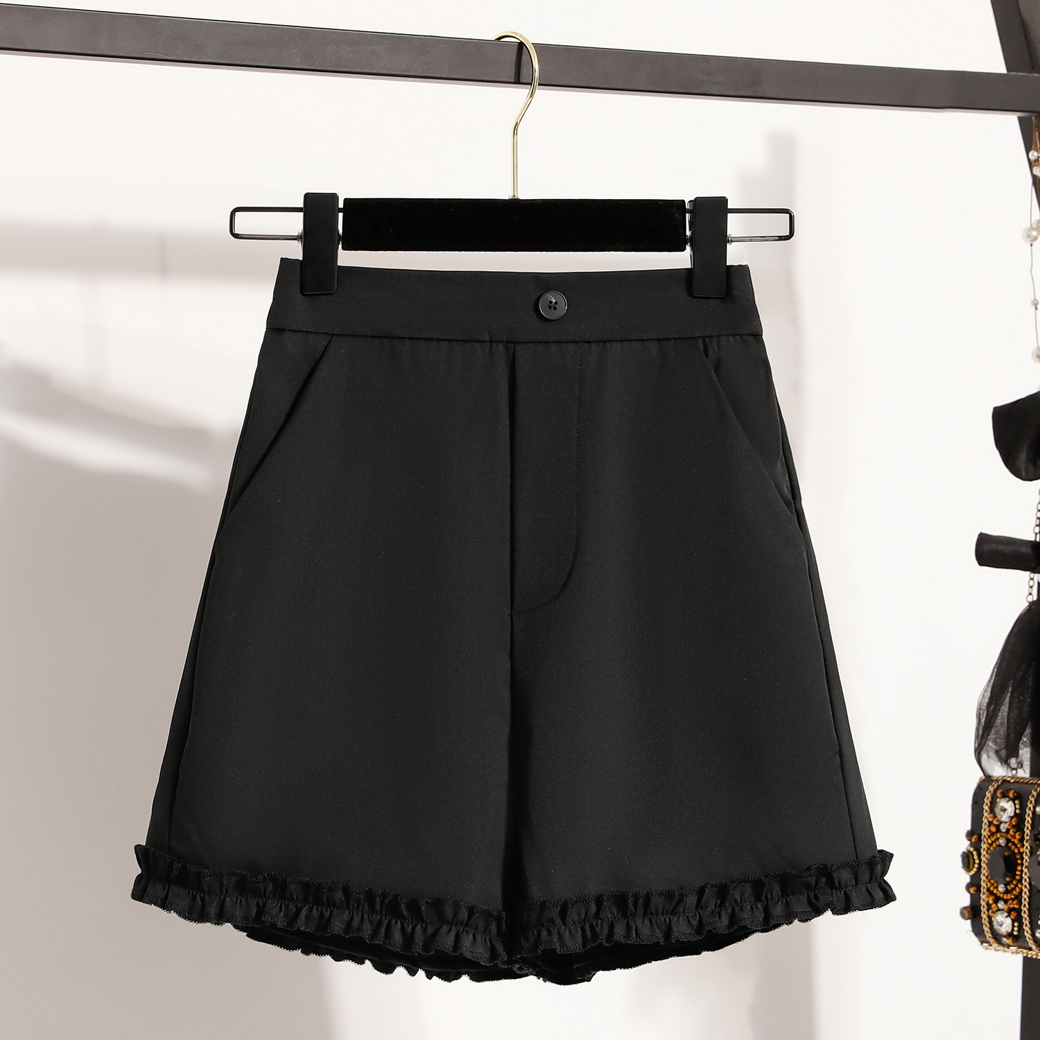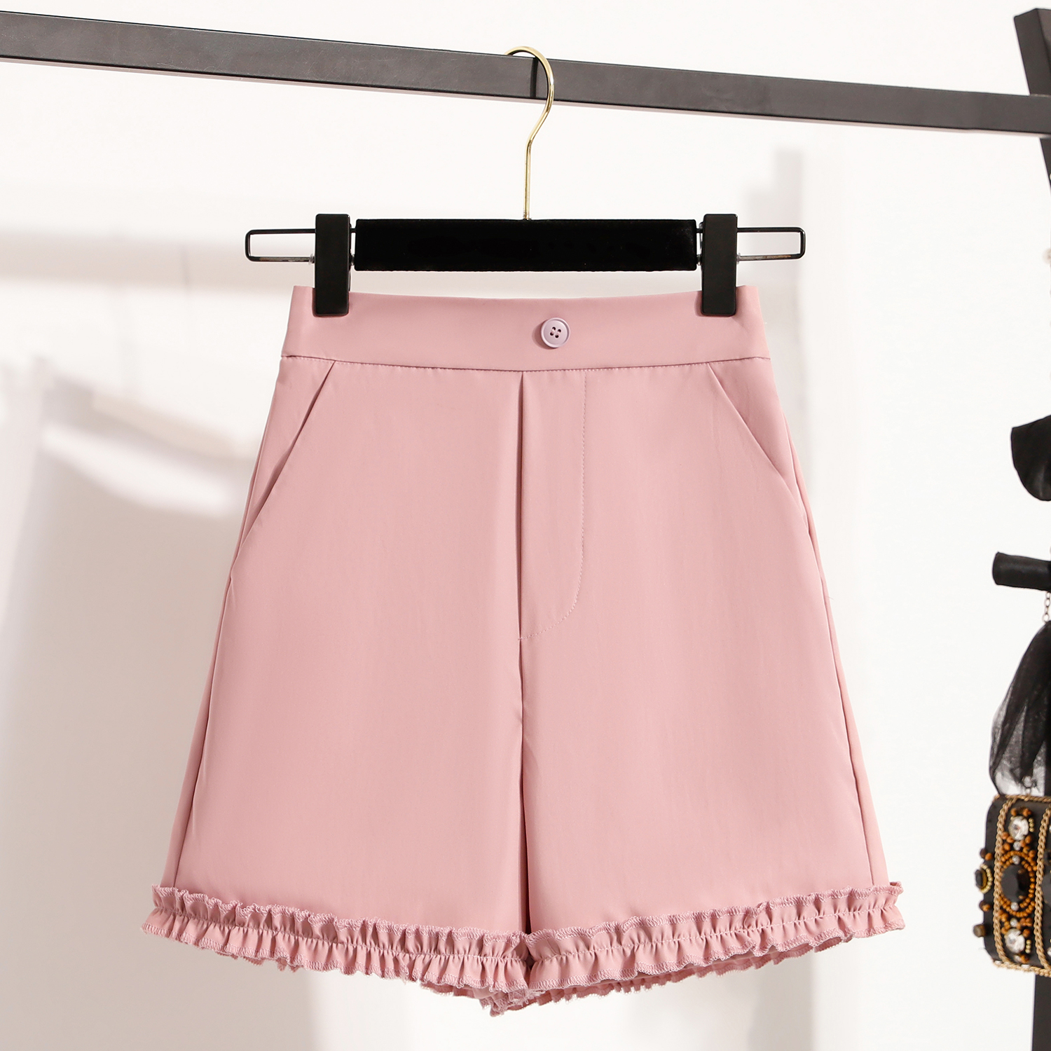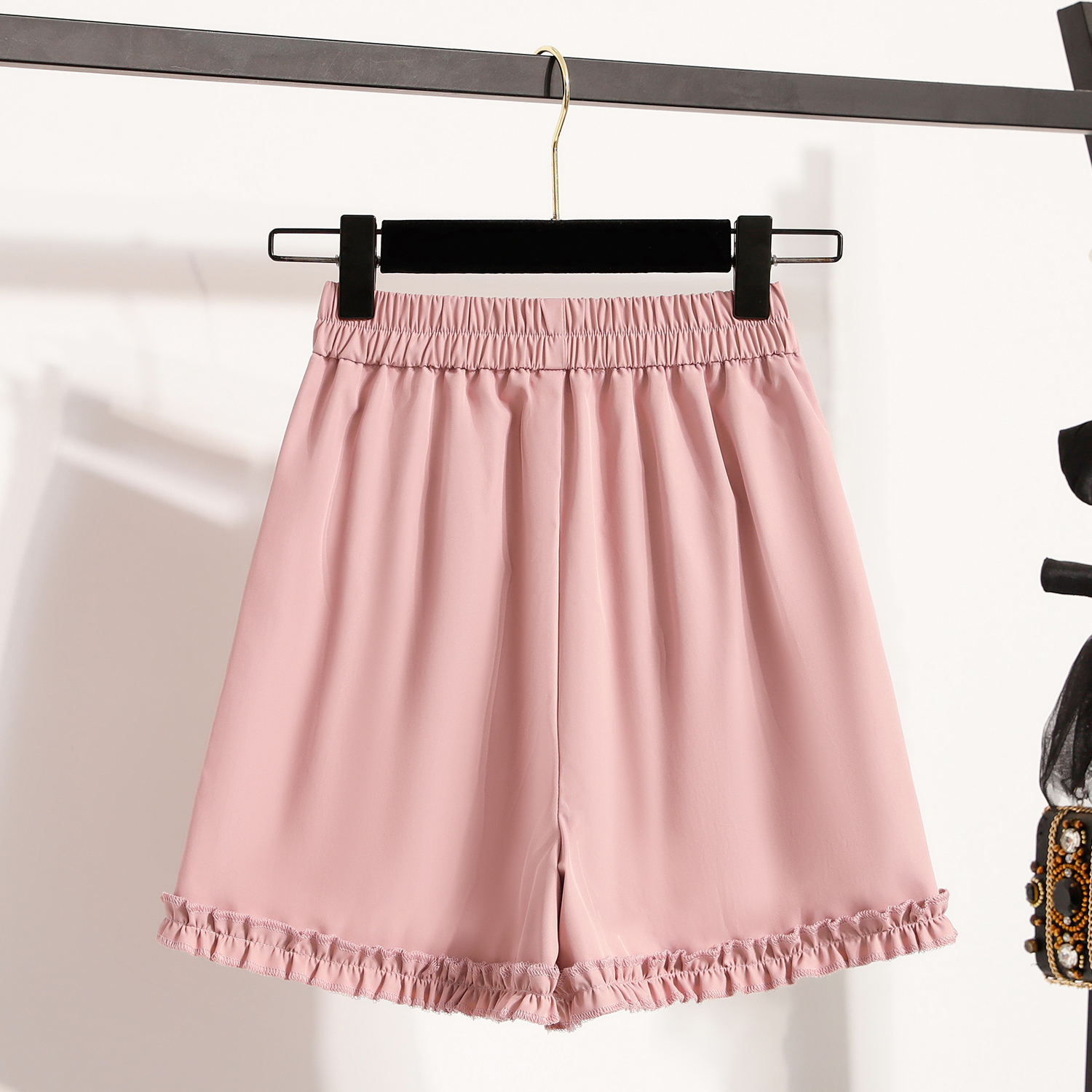 Home > 短裤、半身裙 > 夏新款大码宽松韩版薄款阔腿四分短裤胖MM松紧腰花边休闲热裤 服裝批發女裝批發服飾貨源