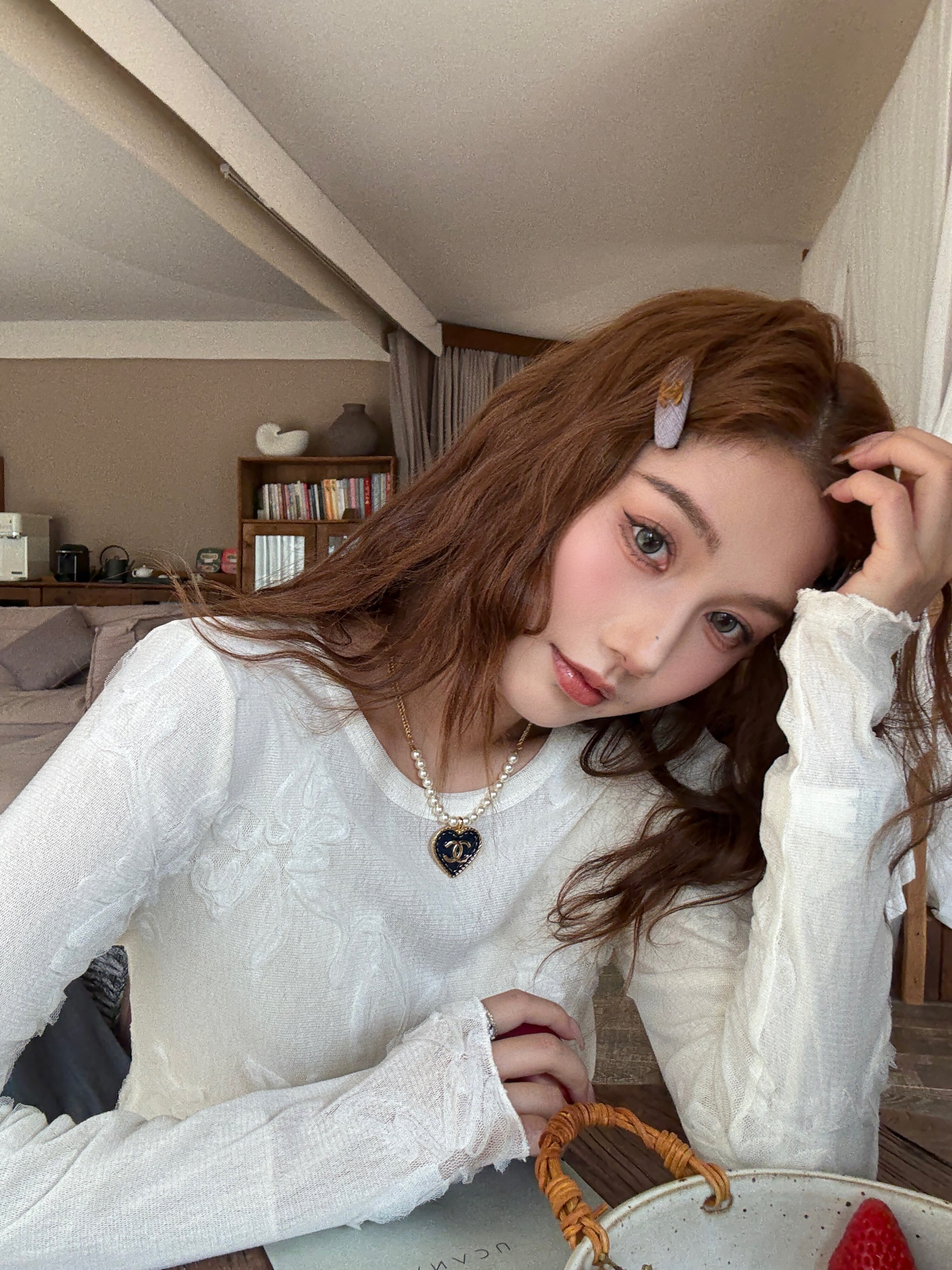 Home > 长袖T恤 > 白色刺绣花打底衫女早春设计感不规则蕾丝边拼接针织衫上衣 服裝批發女裝批發服飾貨源