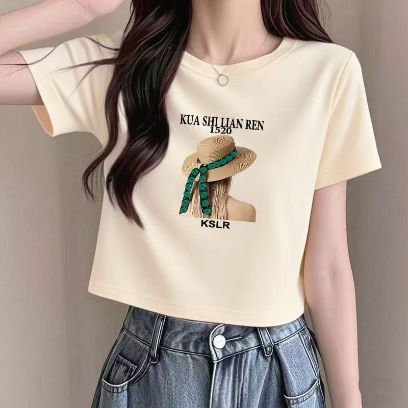 短款T恤女新款夏季正肩短袖小众热辣打底上衣潮 服裝批發女裝批發服飾貨源