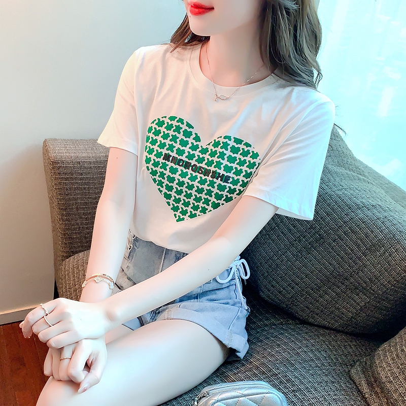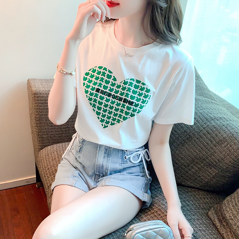 纯棉T恤女装爱心短袖体恤宽松大码半袖夏装新款设计感小众 服裝批發女裝批發服飾貨源