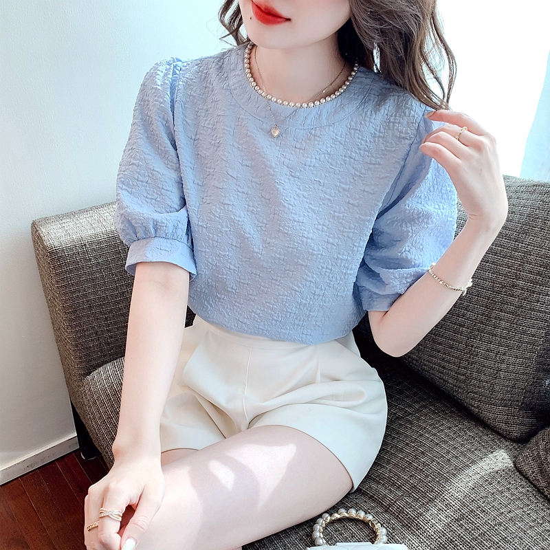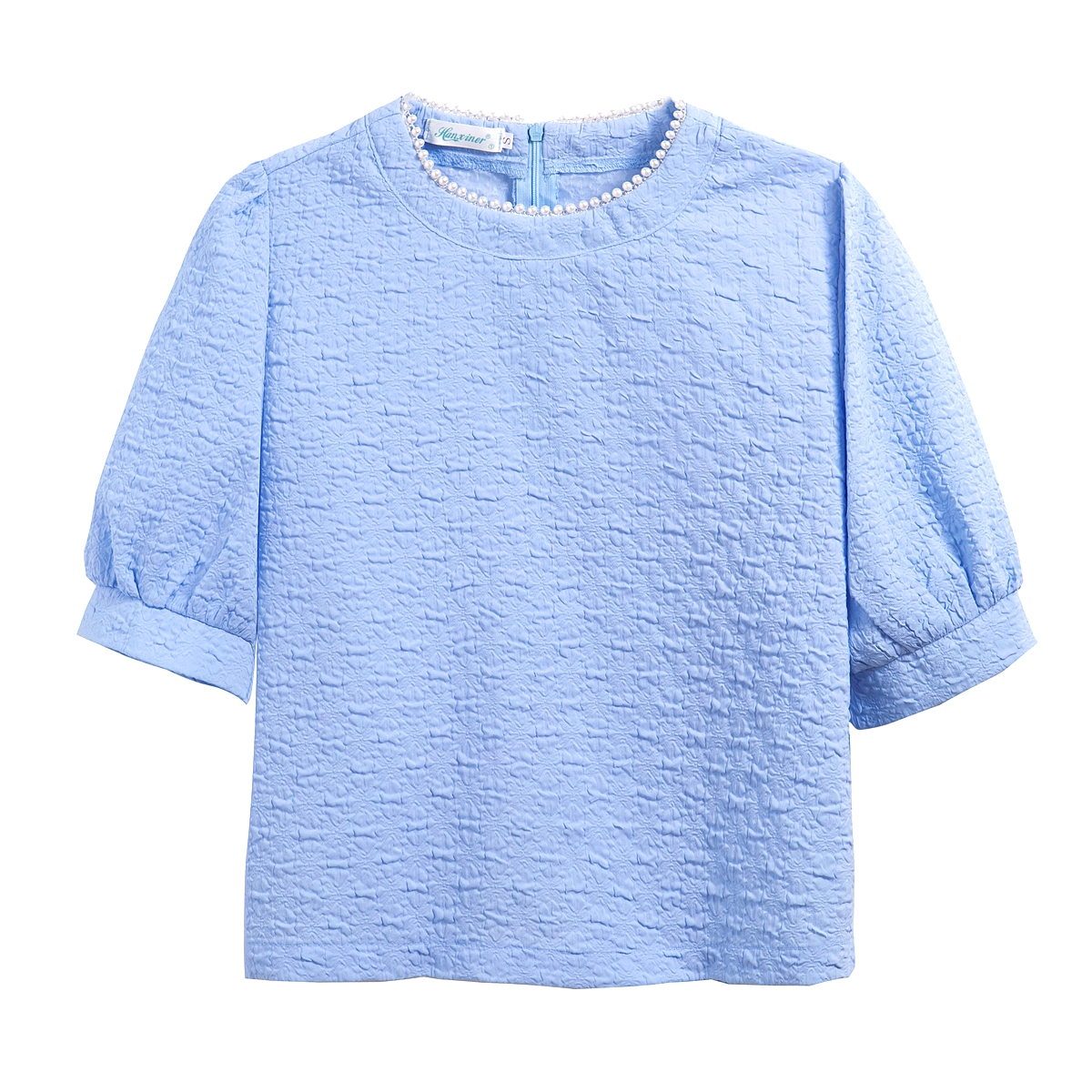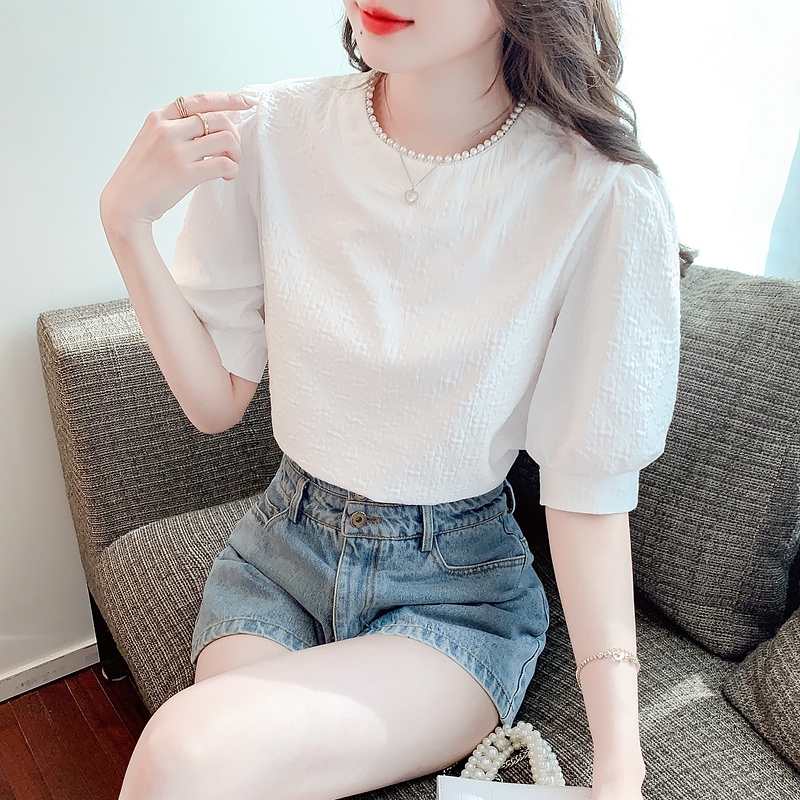 BY12304# 薄款泡泡袖雪纺上衣女夏季新款设计感小众别致短袖直角肩衬衫 服裝批發女裝批發服飾貨源
