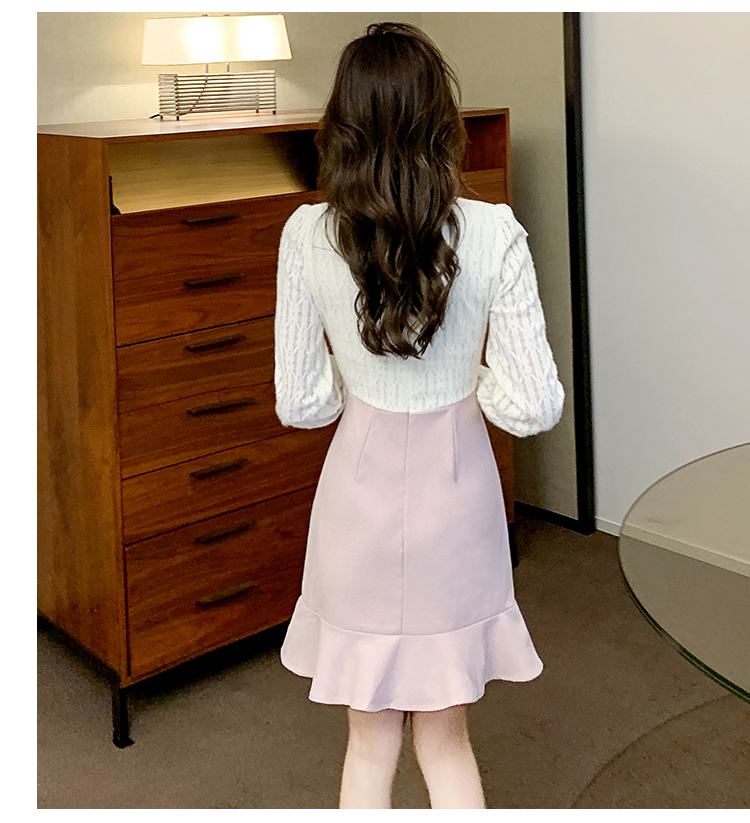 小香风鱼尾裙女装早春季连衣裙女V领收腰裙子新款包臀短裙 服裝批發女裝批發服飾貨源