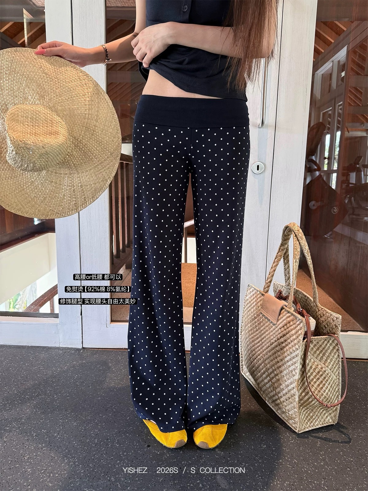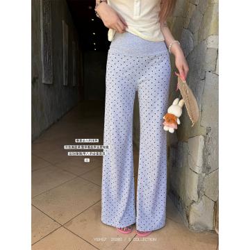 Home > 牛仔裤、长裤 > BY12441# 原创波点休闲女微喇显瘦遛弯裤直筒拖地裤子 服裝批發女裝批發服飾貨源