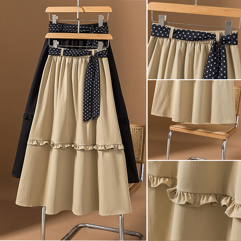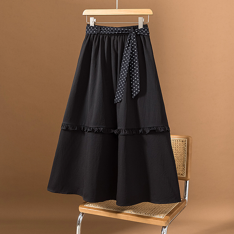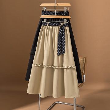 BY12522# 大码女装韩版新款设计小众花边系带显瘦休闲百搭半身裙 服裝批發女裝批發服飾貨源