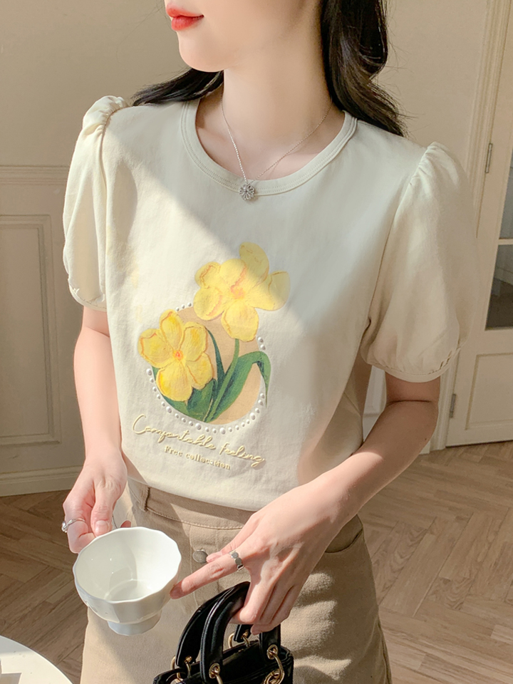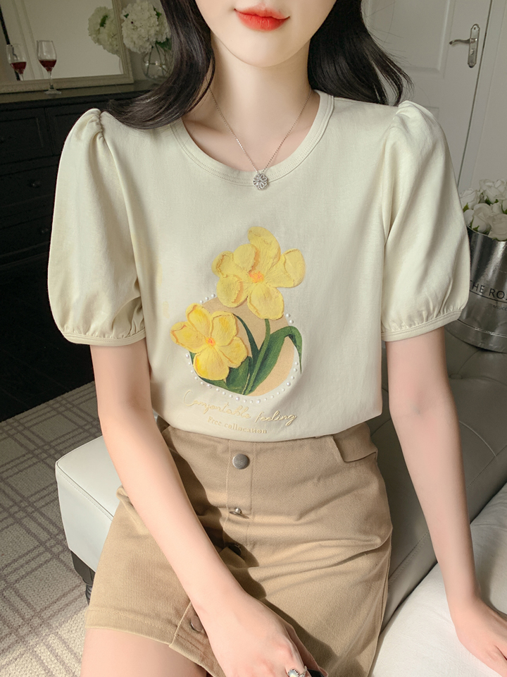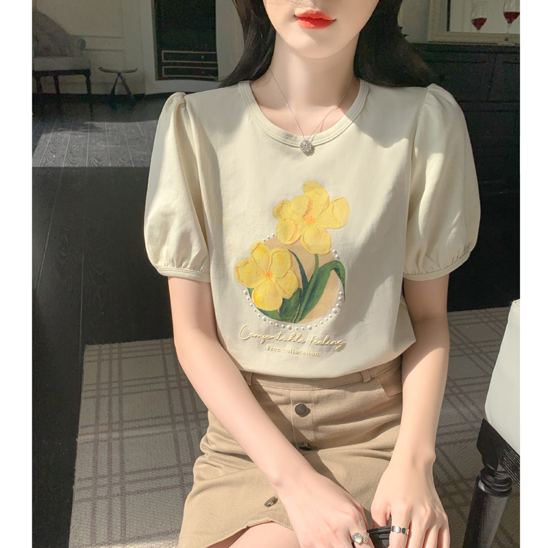 BY13379# 夏季新款时尚圆领宽松印花短袖t恤百搭女士显瘦上衣潮 服裝批發女裝批發服飾貨源