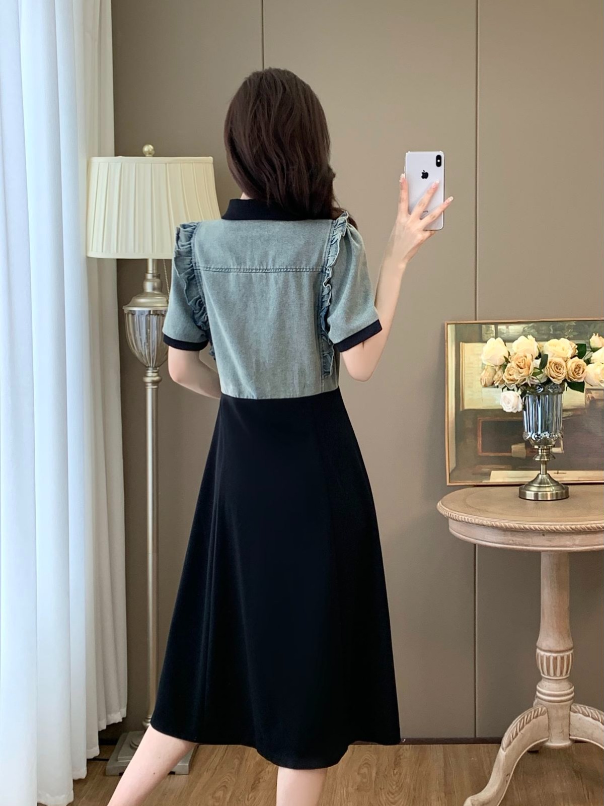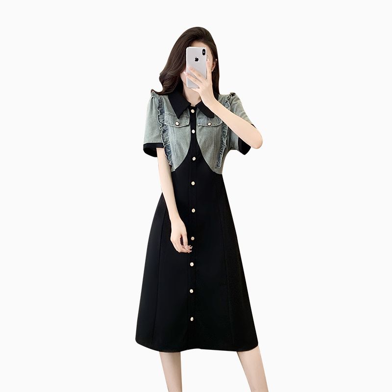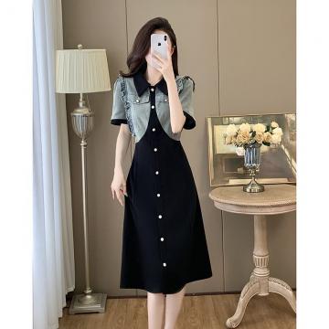Home > 短袖连衣裙、夜店装 > BY13387# 大码连衣裙夏胖mm新款拼接假两件木耳边收腰显瘦长裙 服裝批發女裝批發服飾貨源