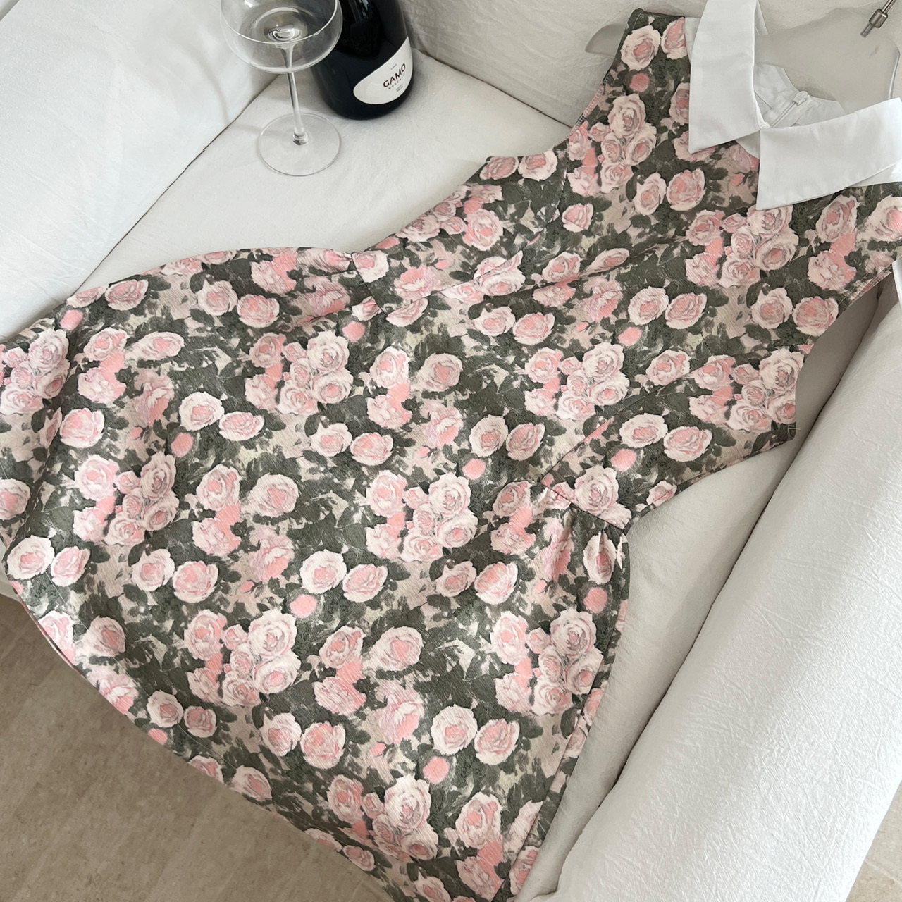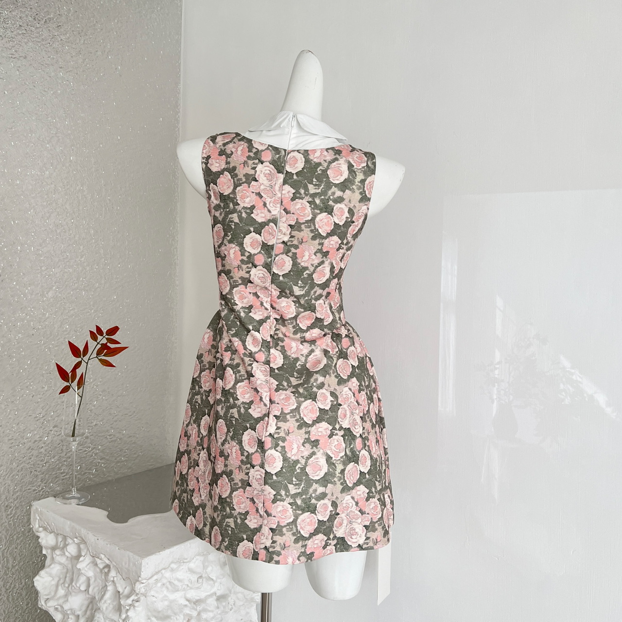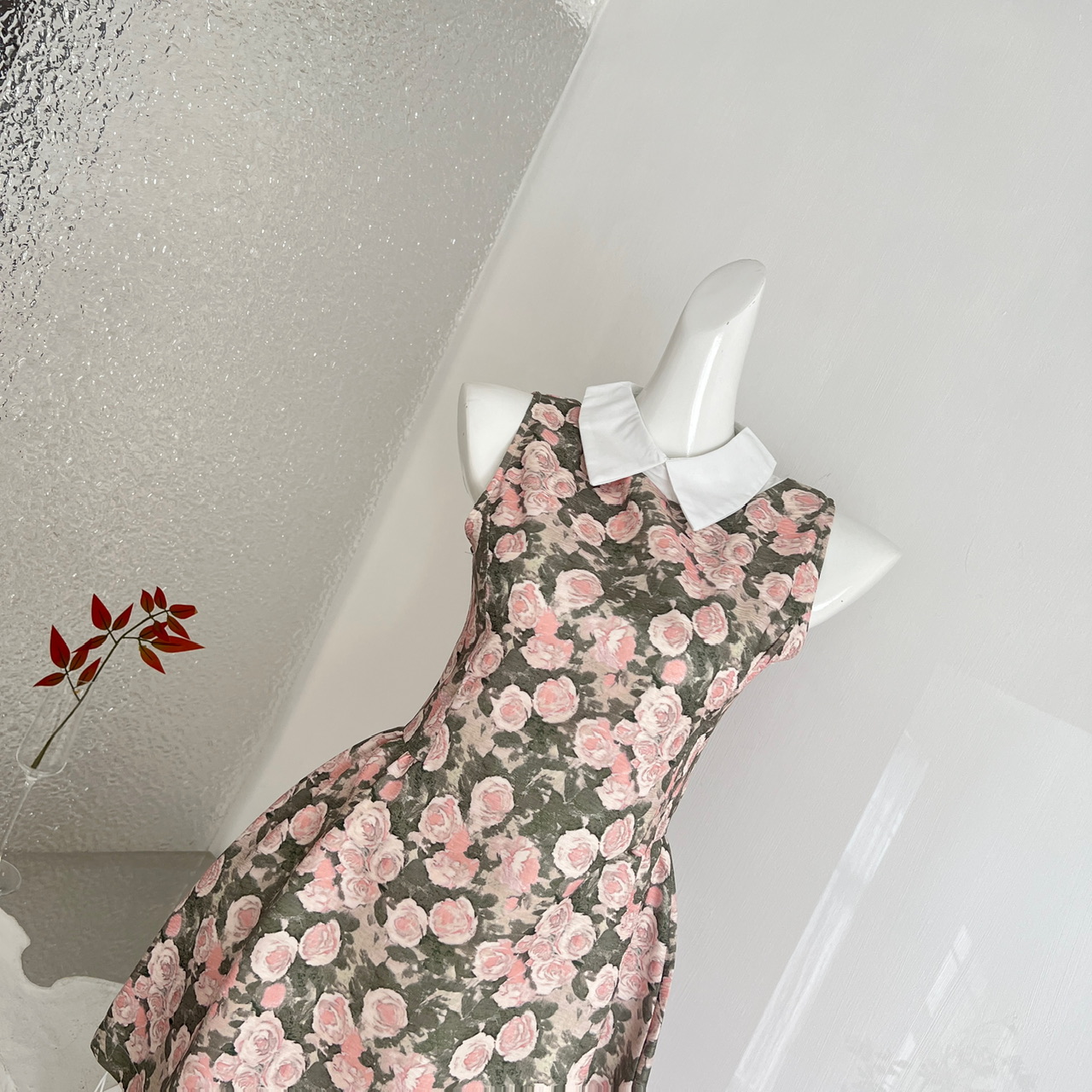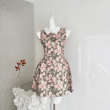 BY13404# RECIT玫瑰油画衬衫领无袖连衣裙女春夏千金风蓬蓬修身收腰背心裙 服裝批發女裝批發服飾貨源