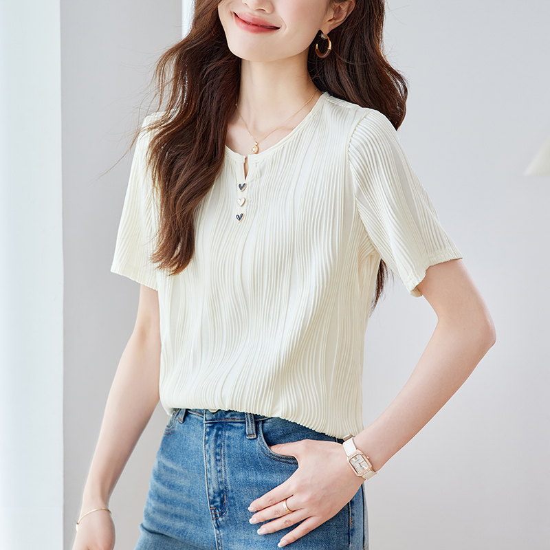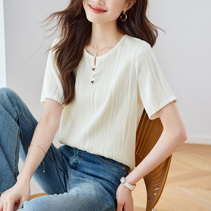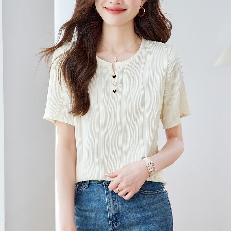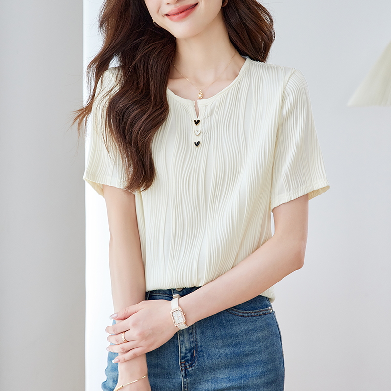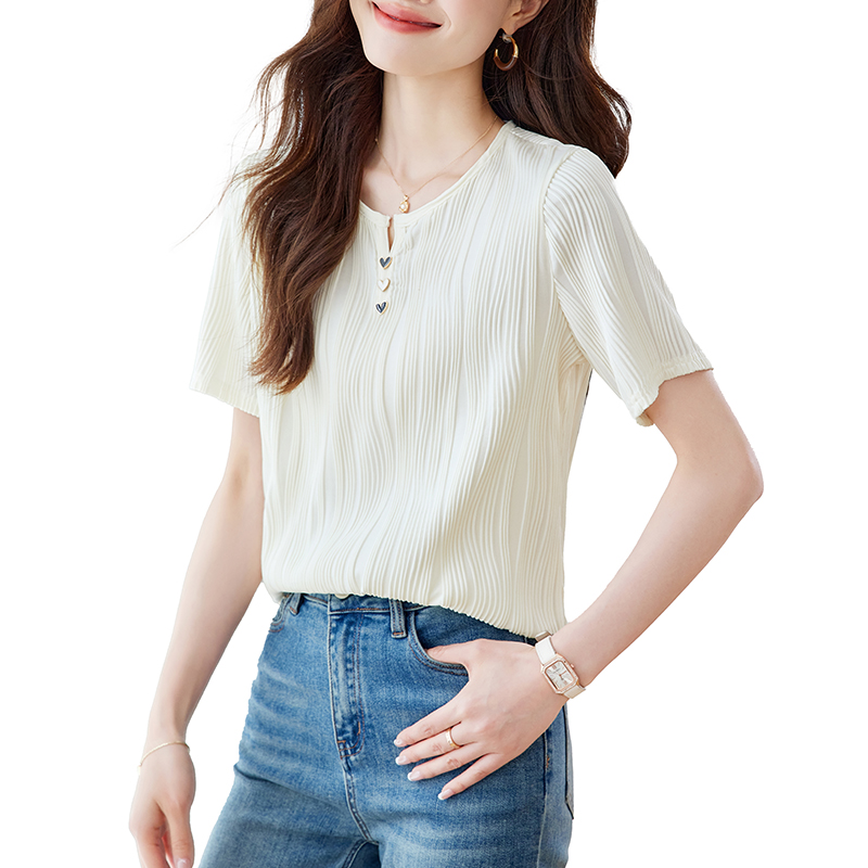 Home > 短袖雪纺衫、衬衫、上衣 > BY14446# 肌理感短袖女正肩t恤夏季新款设计感小众独特别致法式上衣服裝批發女裝批發服飾貨源