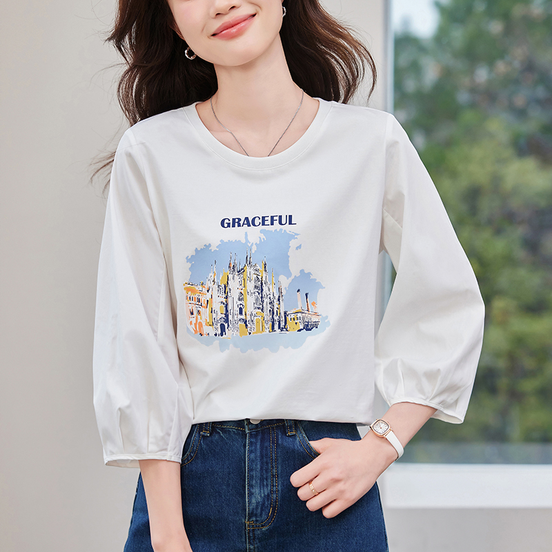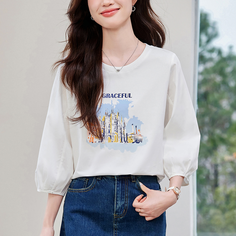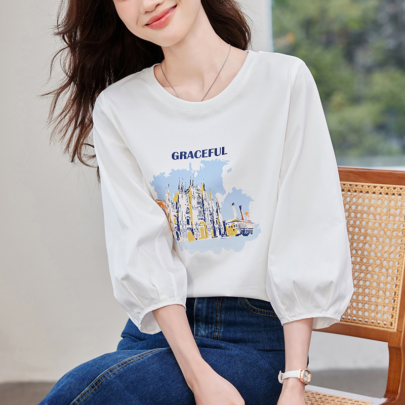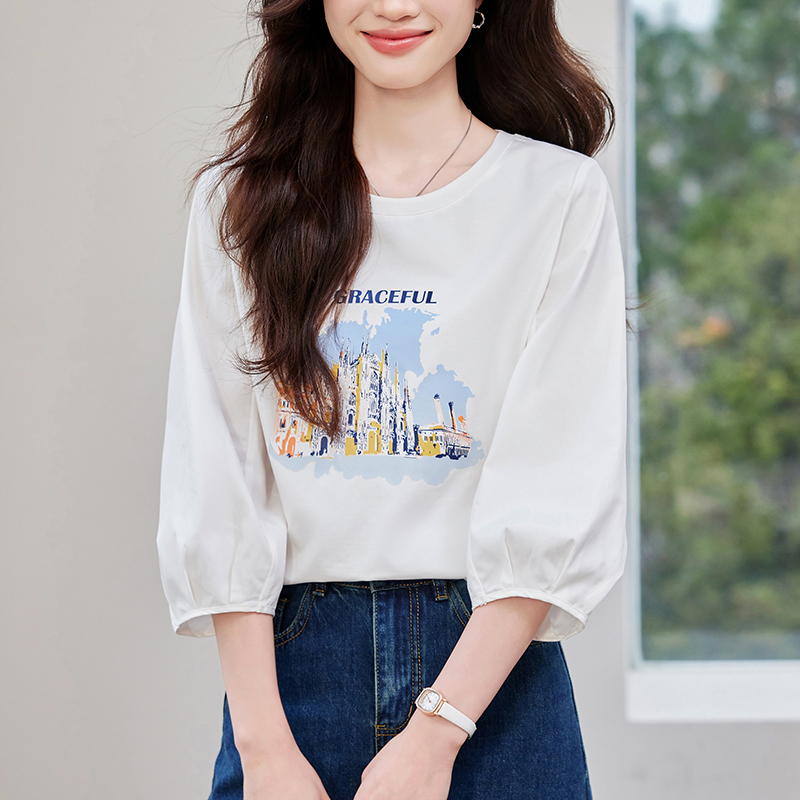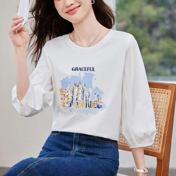 BY14447# 七分袖印花T恤女春夏新款时尚减龄中袖天丝体恤上衣服裝批發女裝批發服飾貨源