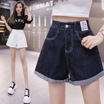 高腰阔腿短裤女夏季原创显瘦仿牛仔宽松宽松a字哈伦热裤 服裝批發女裝批發服飾貨源