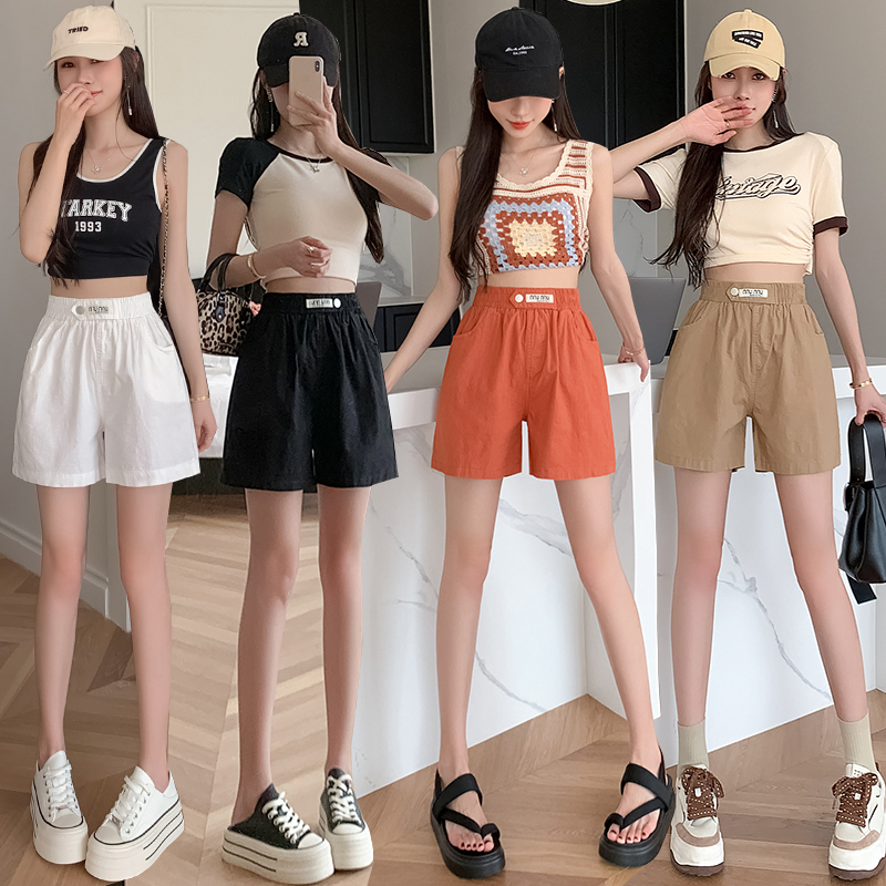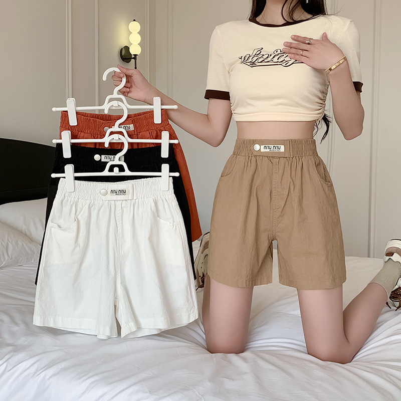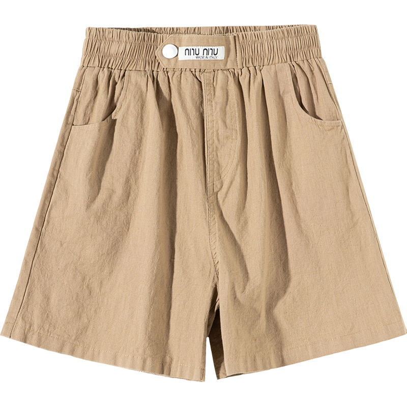 超火日系中短裤女夏季简约高腰洗水棉麻宽松腰休闲直筒裤 服裝批發女裝批發服飾貨源