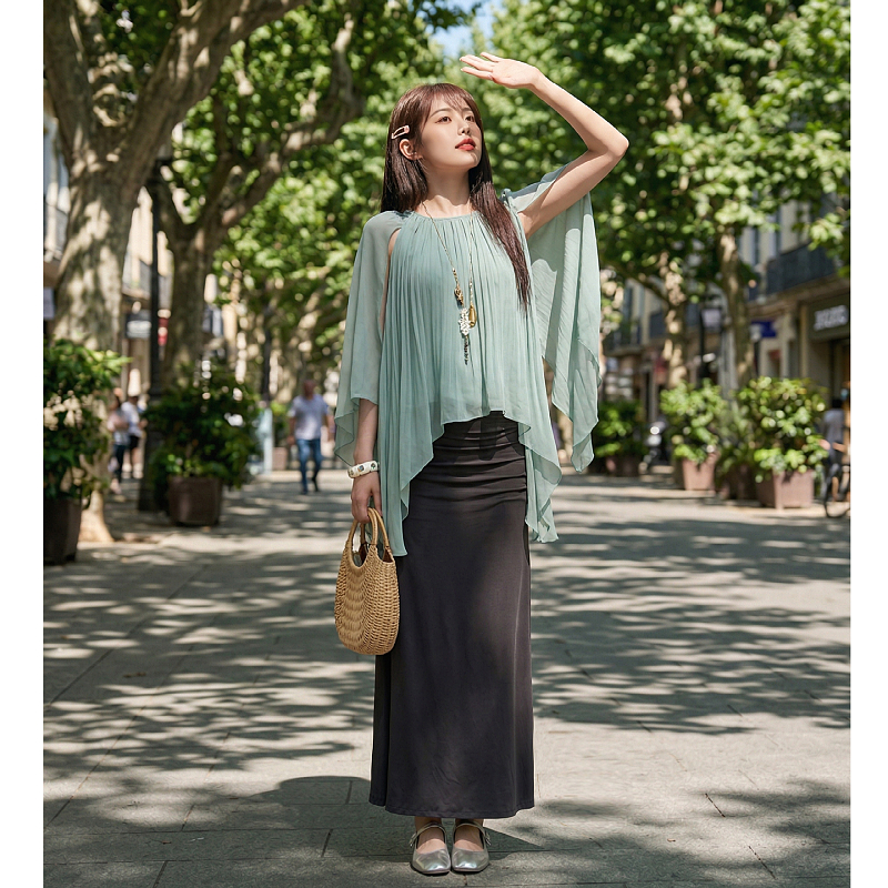区区欧阳'美神度假裙氛围感具象化si服不规则荷叶边衬衫半裙 服裝批發女裝批發服飾貨源