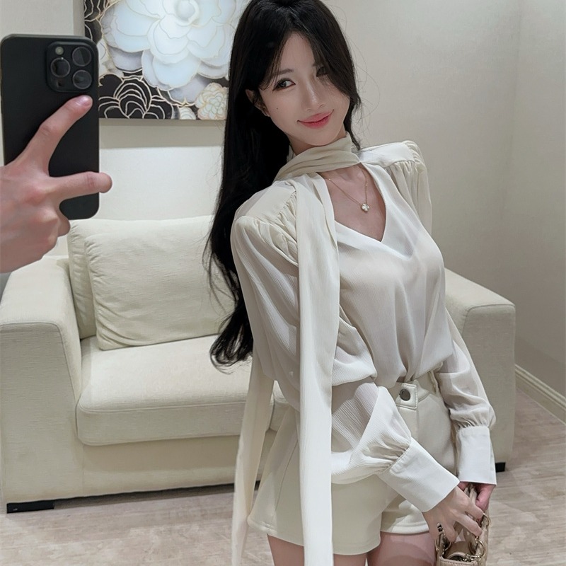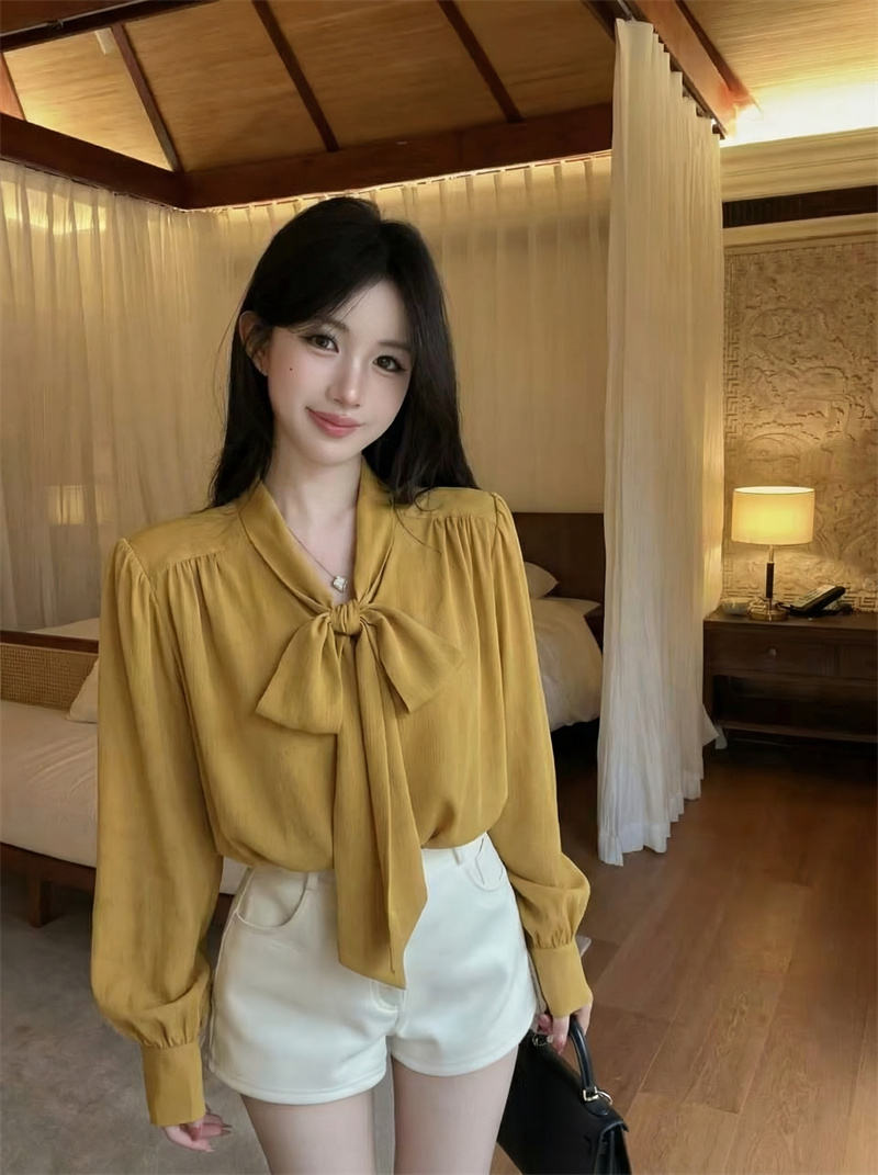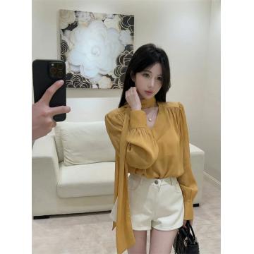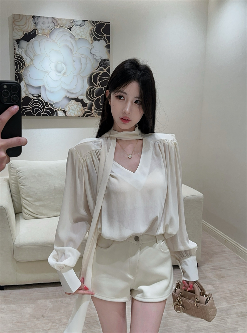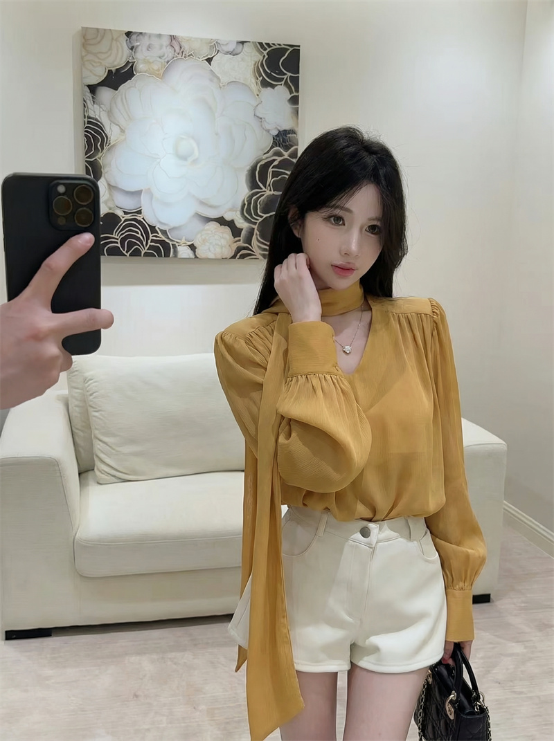 夏季新款法式温柔风飘带设计防晒宽松雪纺衫衬衫 服裝批發女裝批發服飾貨源