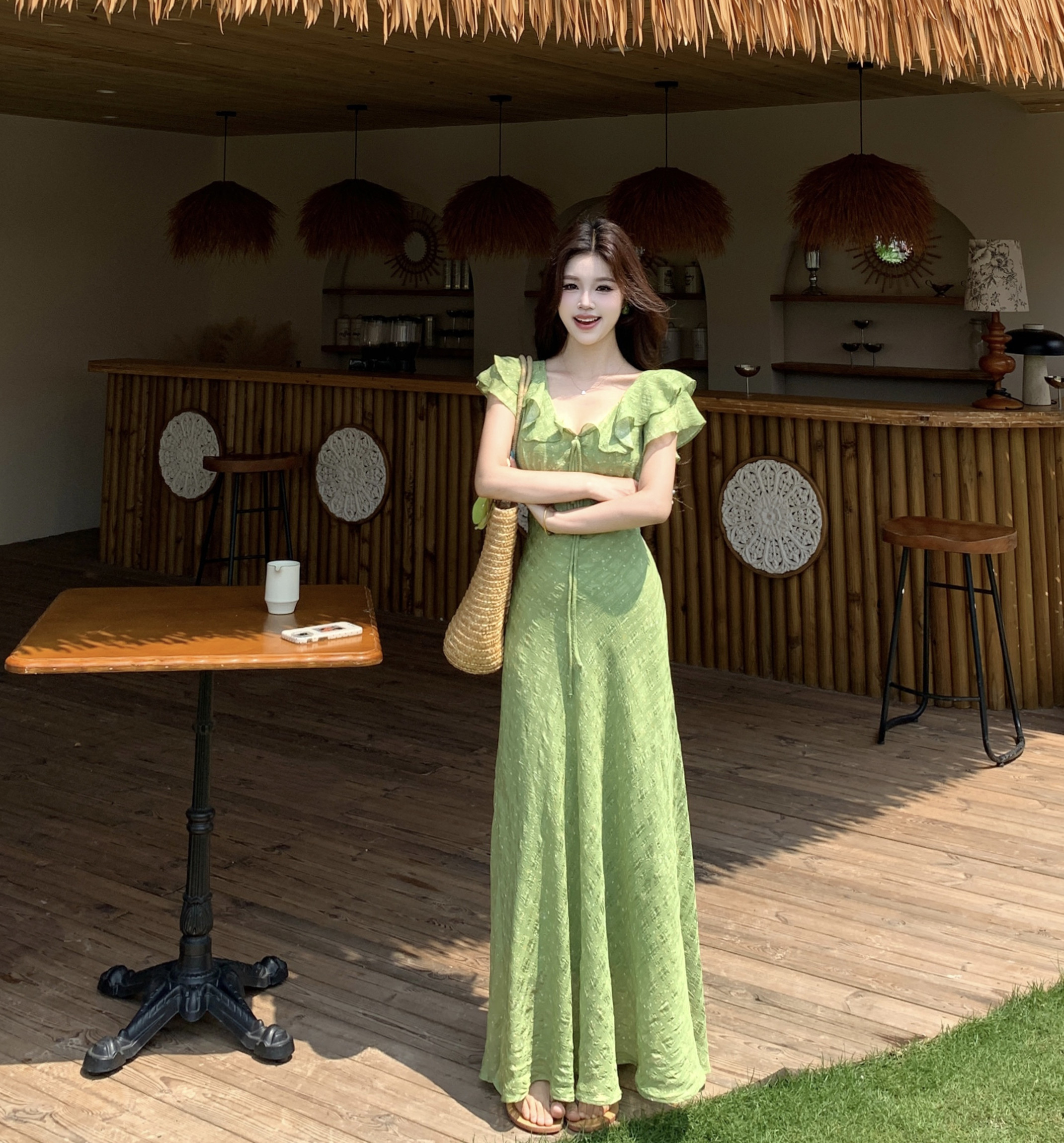 BY16106# 大码夏季新款法式优雅度假连衣裙V领碎花纯欲高腰裙 服裝批發女裝批發服飾貨源
