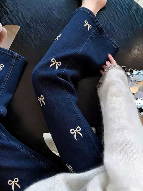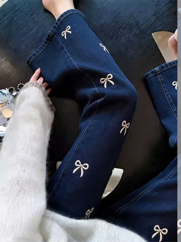 BY16830# 蝴蝶结刺绣微喇牛仔裤女夏季新款修身显瘦休闲百搭慵懒九分裤