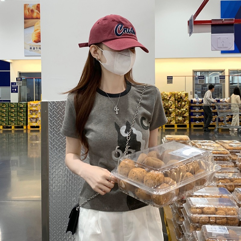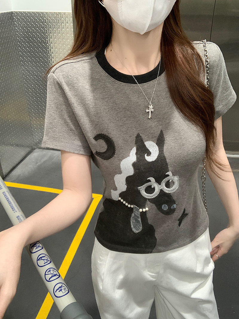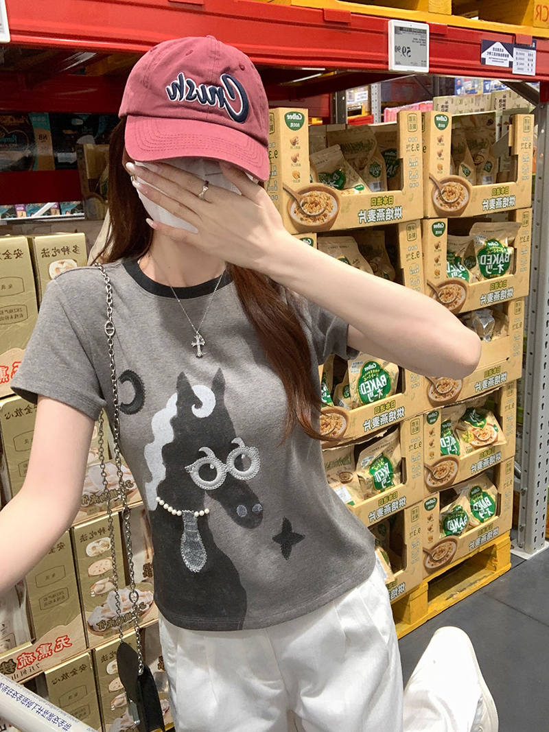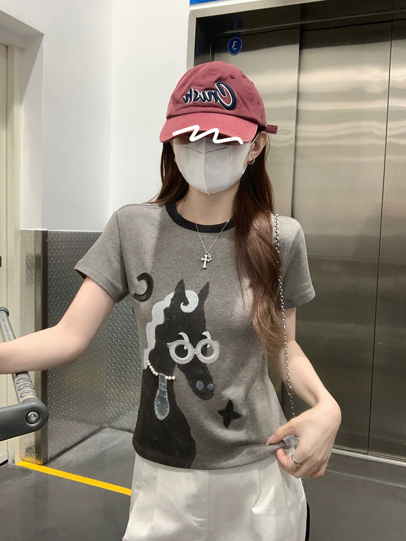 羊绒不抓毛短袖t恤女装夏新款刺绣手工串珠圆领上衣