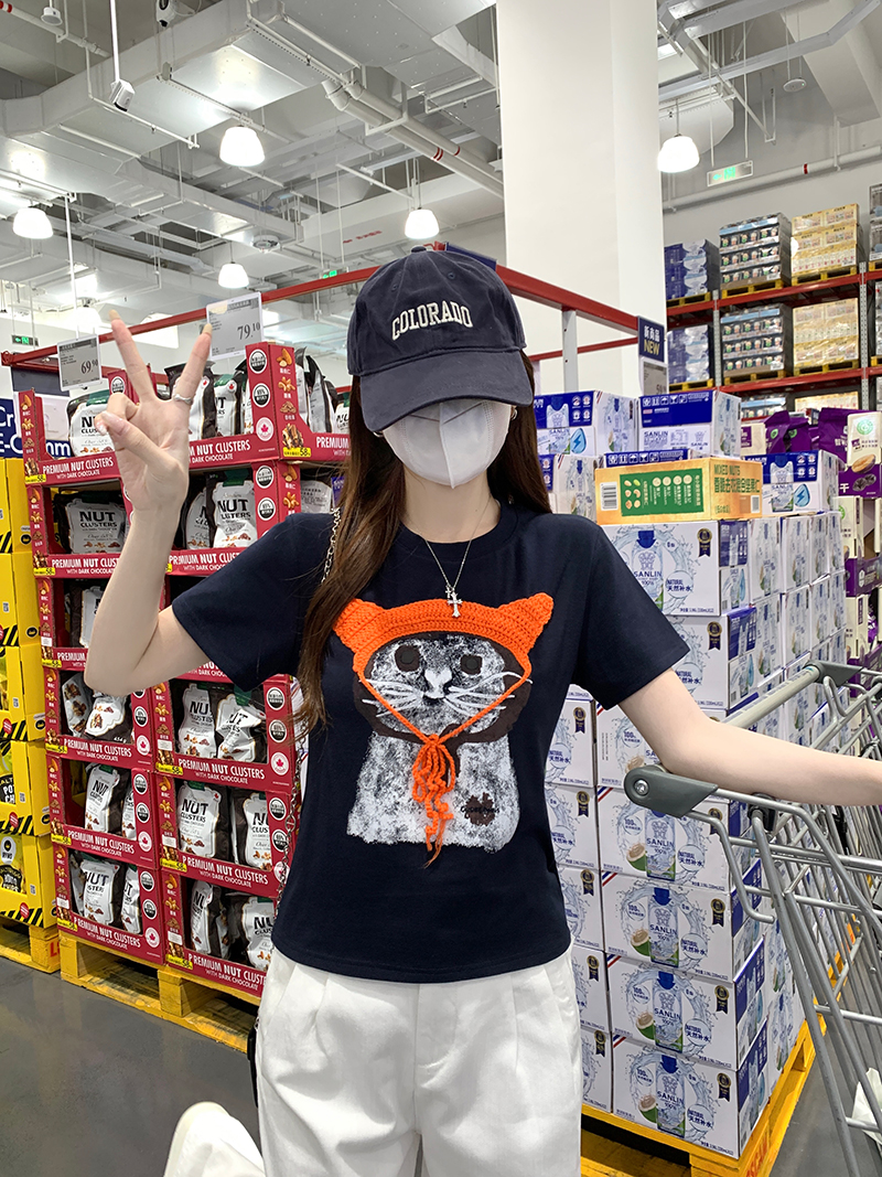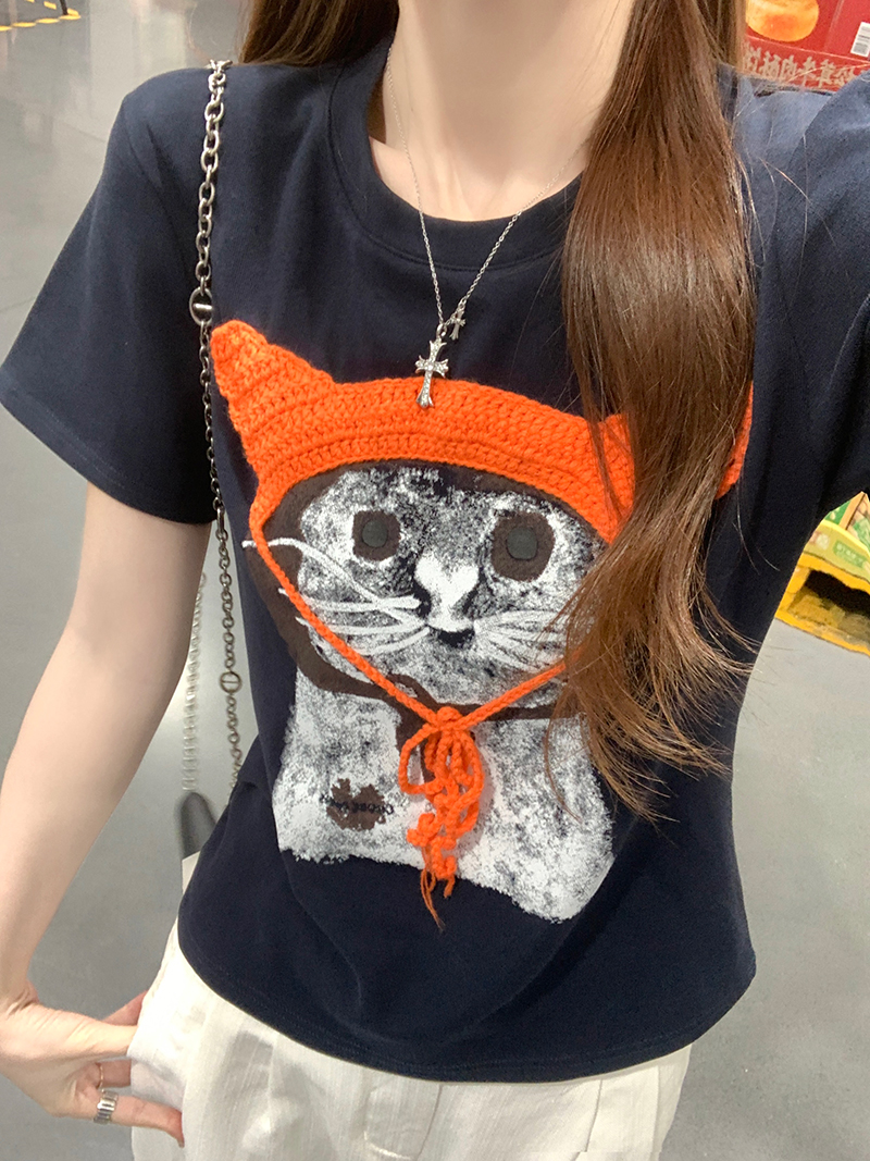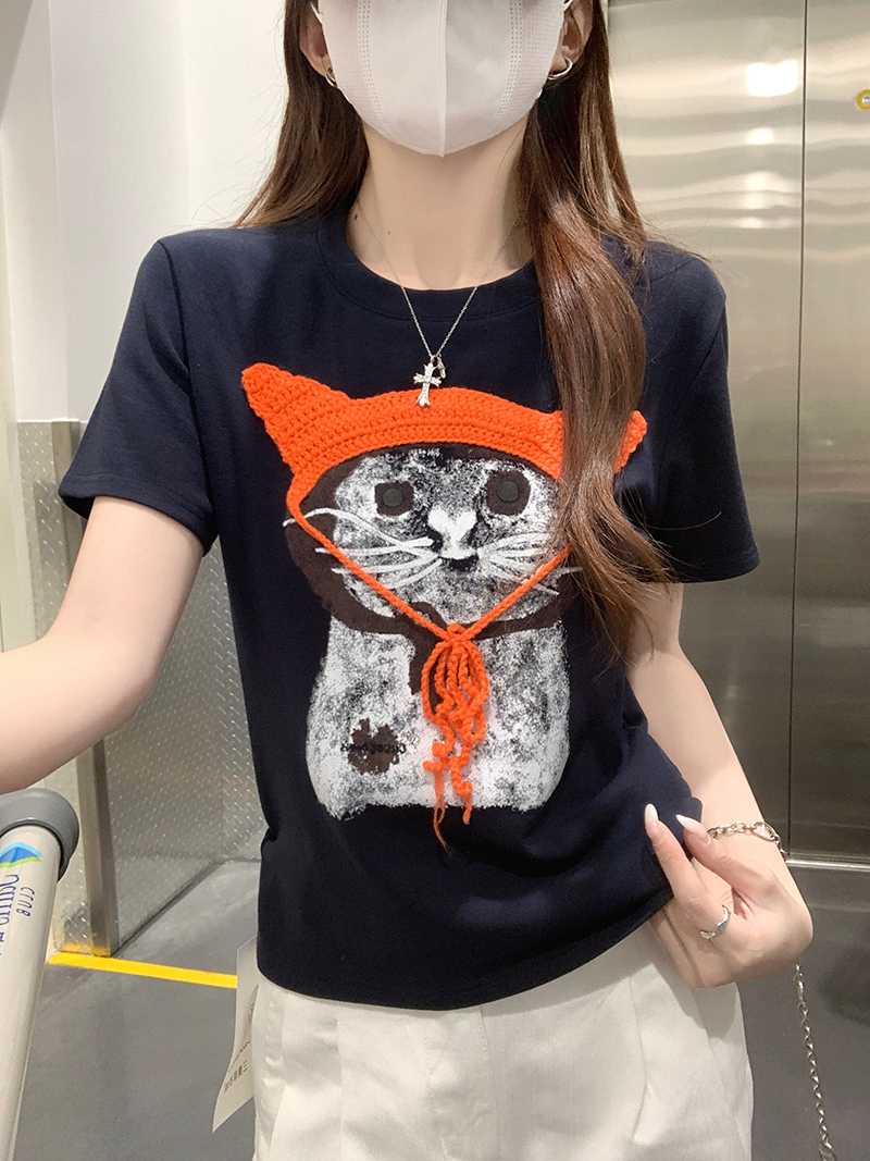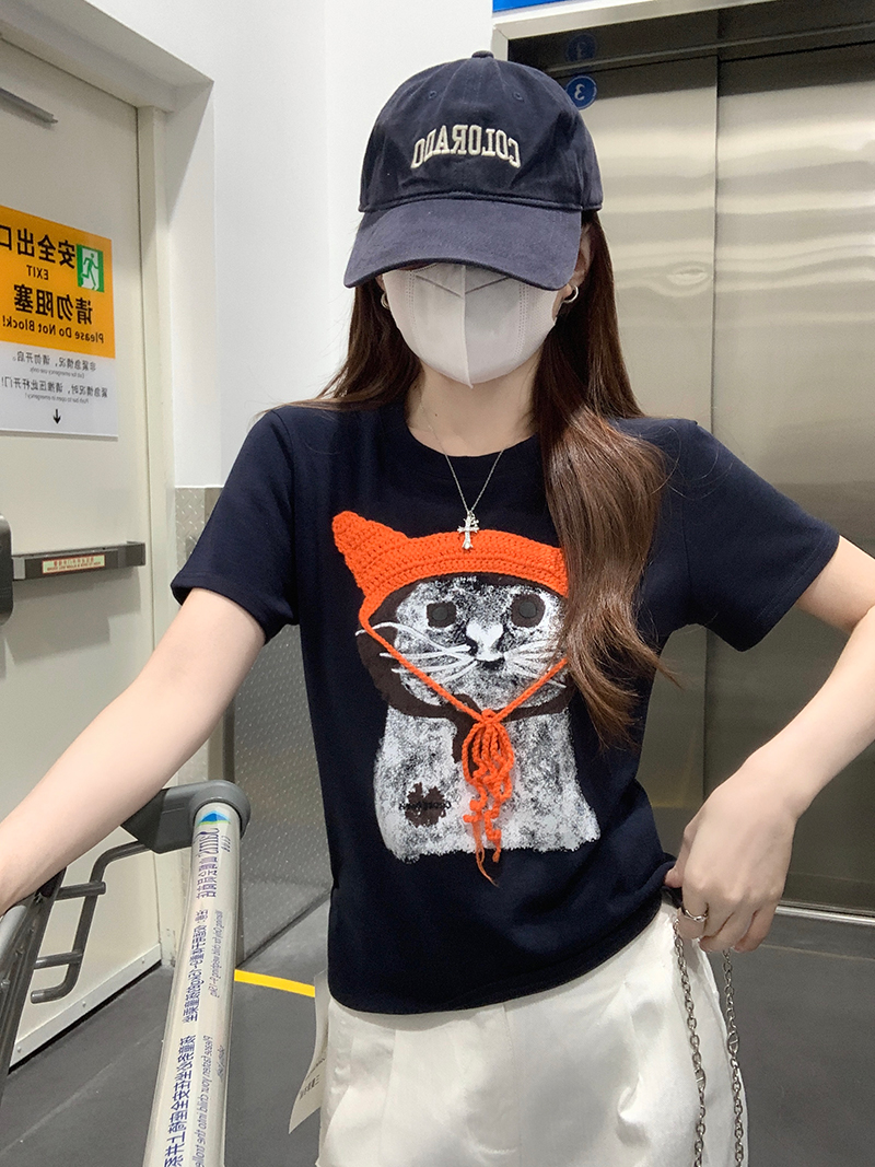 纯棉螺纹短袖t恤女夏新款韩系显瘦刺绣圆领上衣