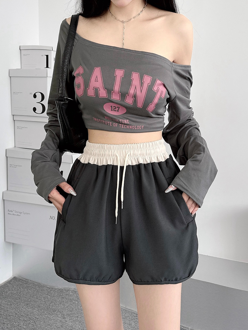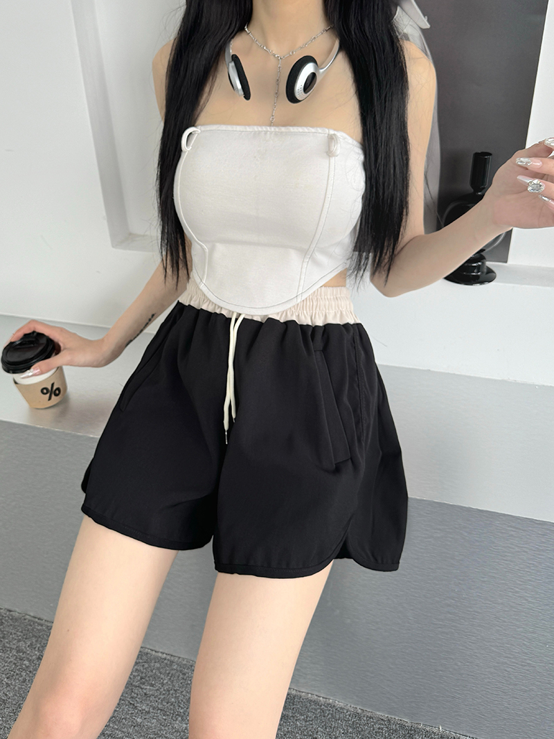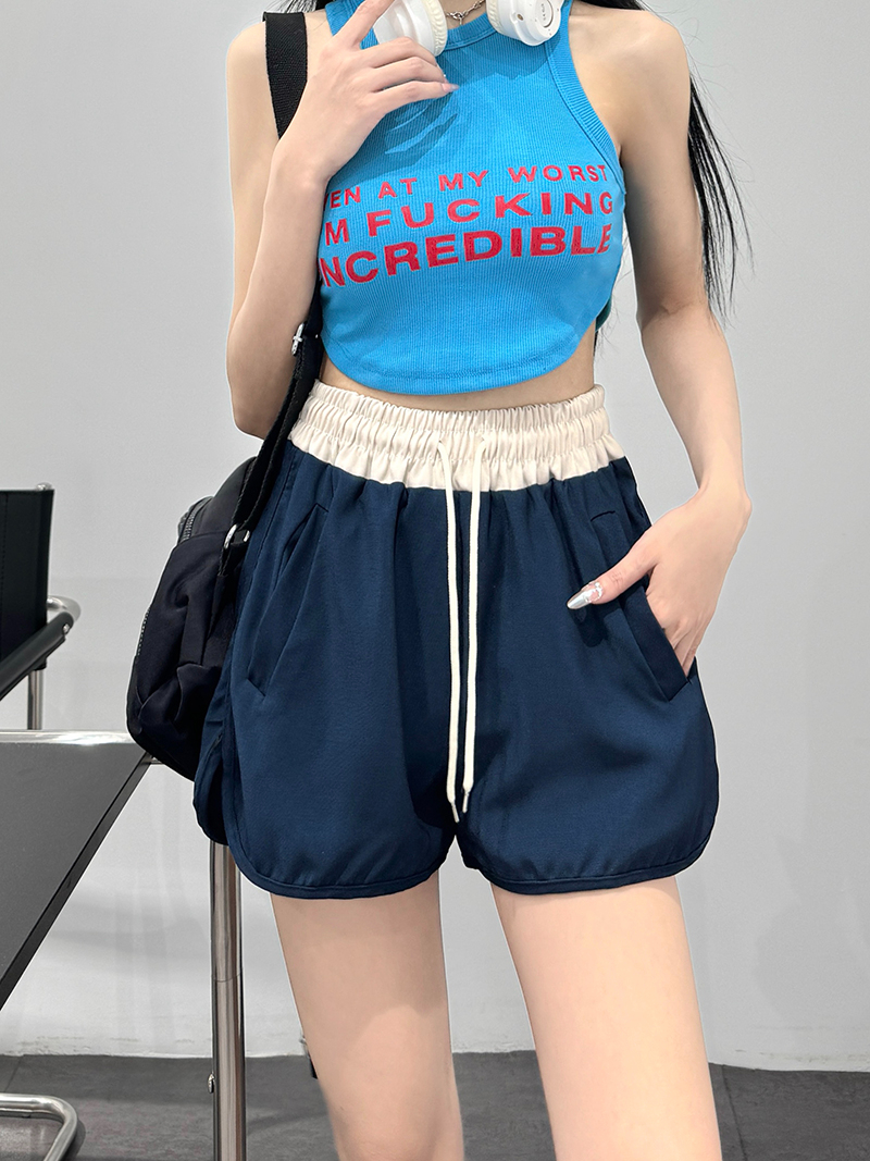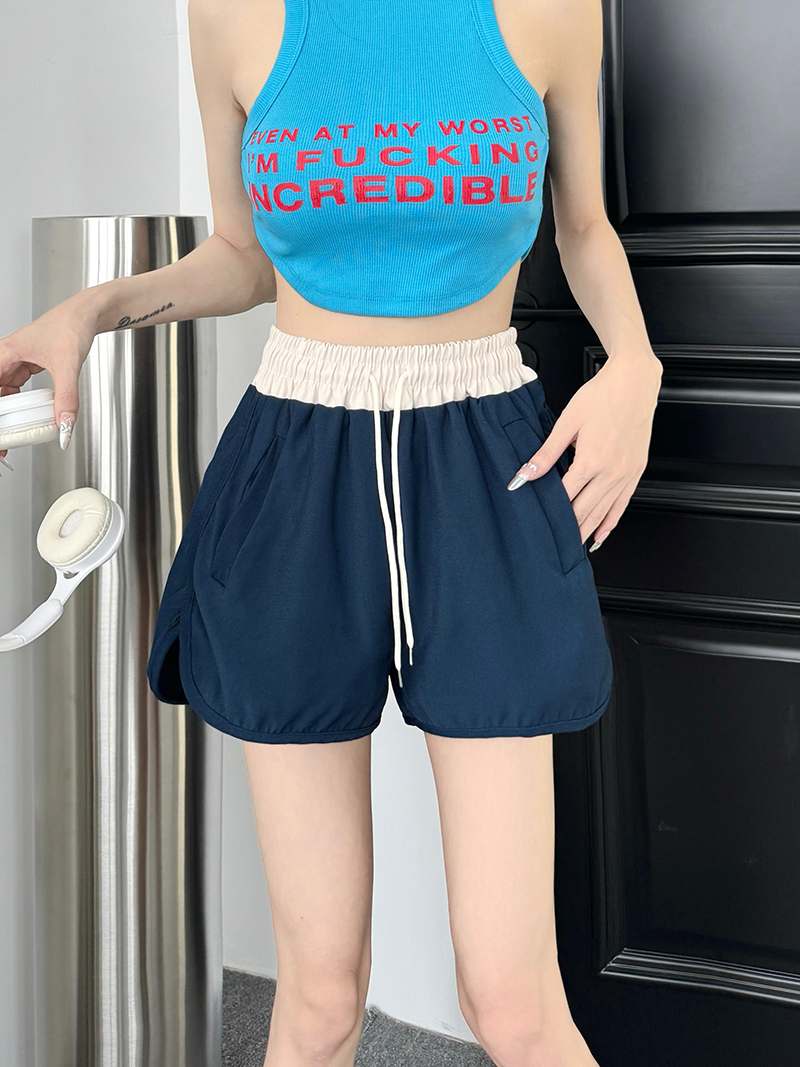 Home > 短裤、半身裙 > BY16862# 夏季新款高质量斜纹宽松女短裤夏新款阔腿裤拼色休闲裤