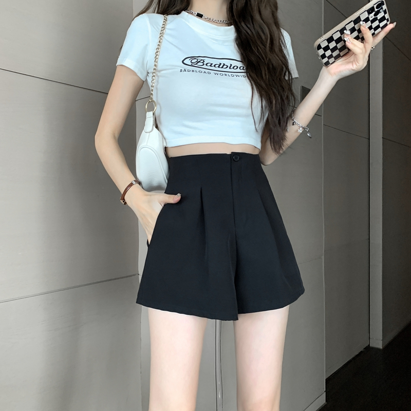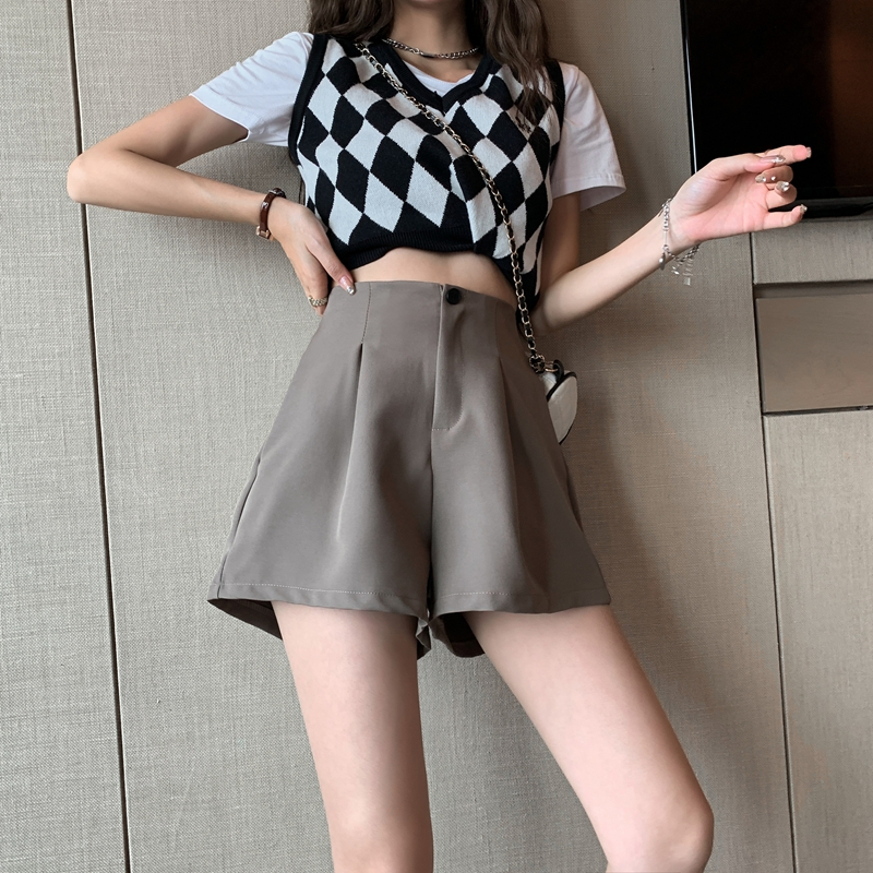 西装料休闲西装裤春夏季高腰短裤新款显瘦阔腿宽松裤