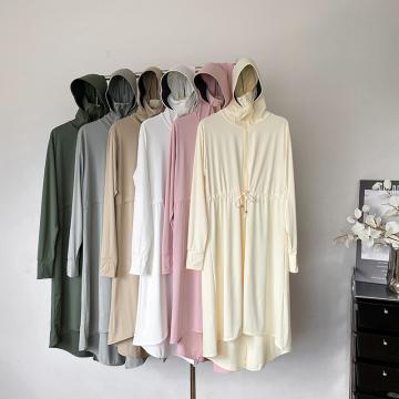 大码长款轻薄冰感防晒衣高质量带抽绳不规则防晒裙防护速干衣