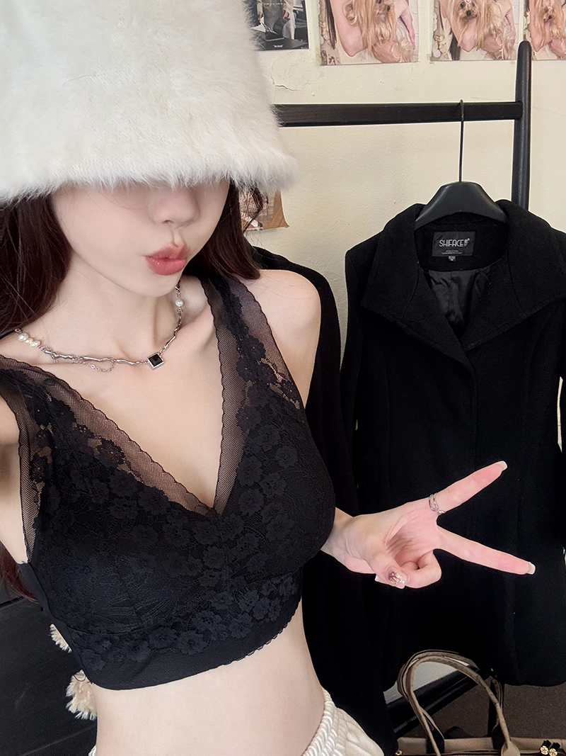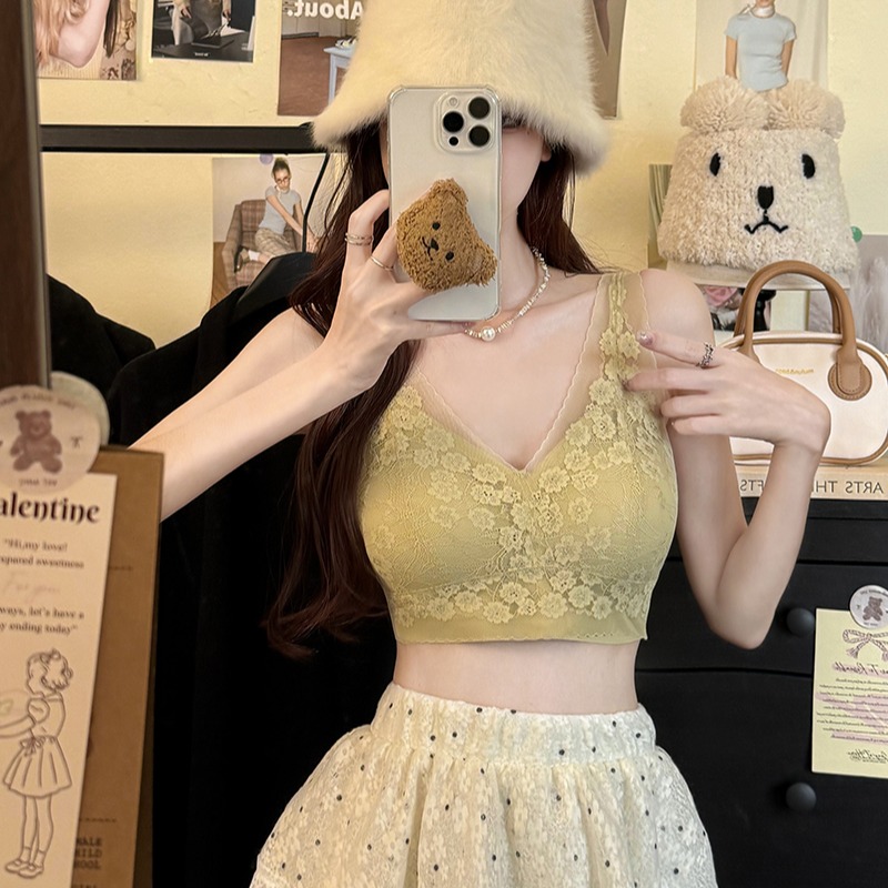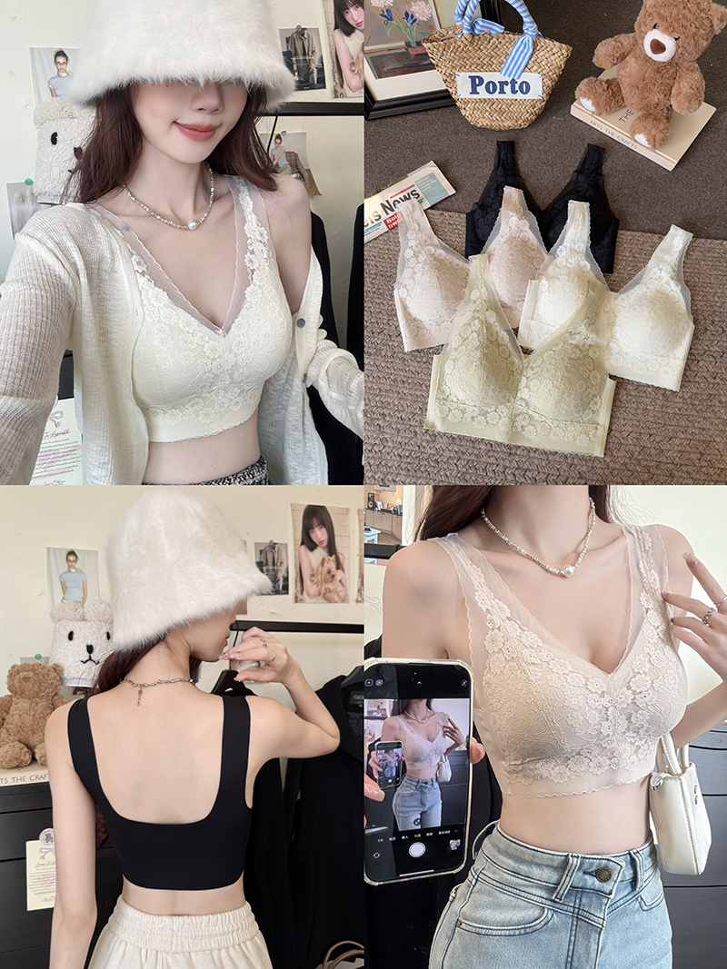 BY16881# 大码蕾丝内衣内搭吊带打底衫法式美背无袖露肩上衣宽肩背心